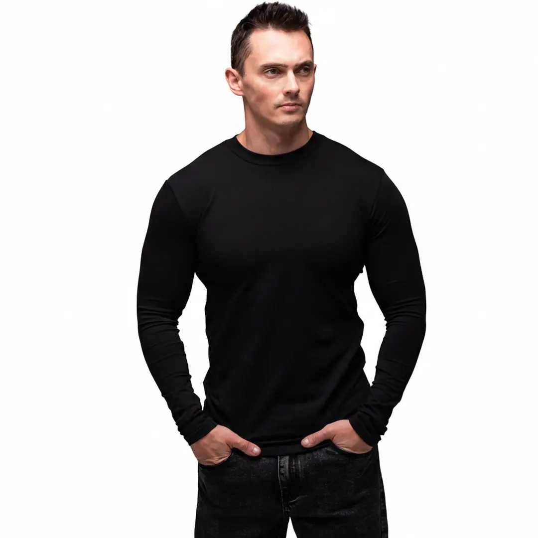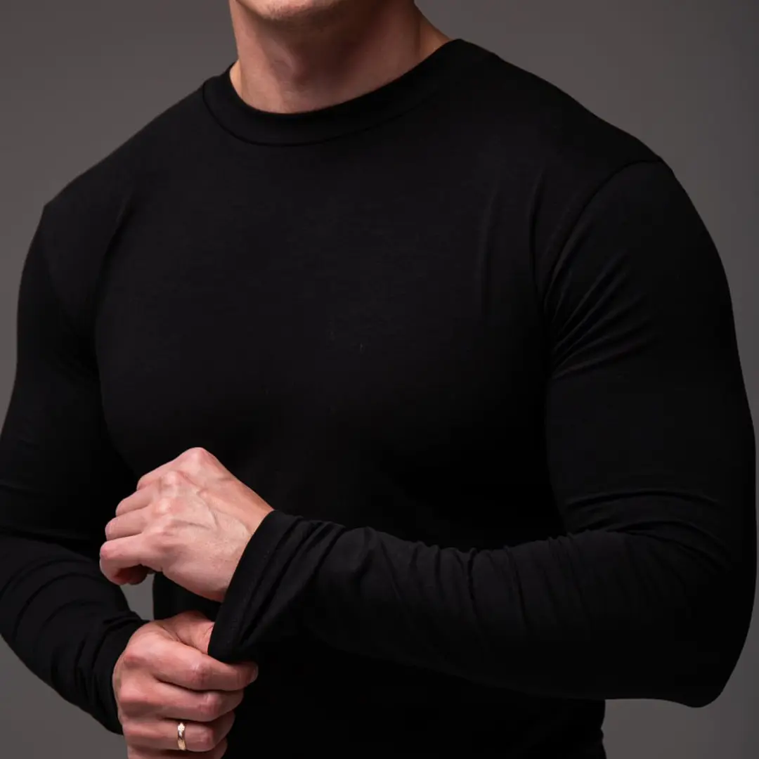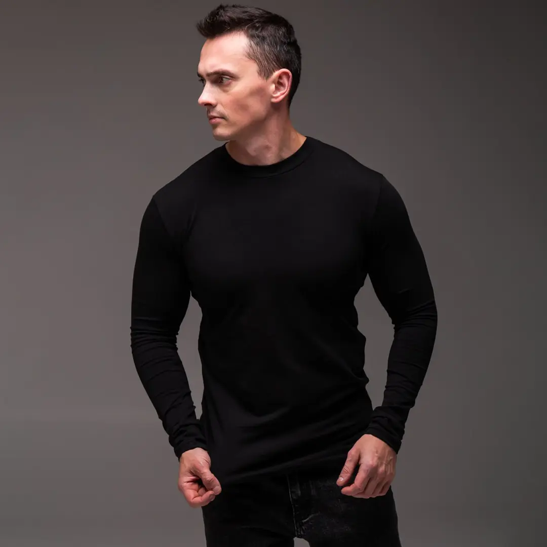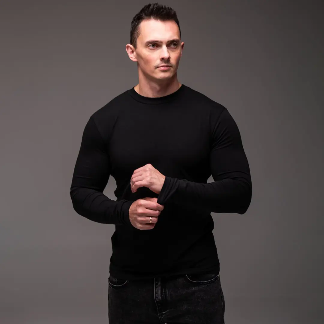 Базовий чоловічий лонгслів Long Black (чорний) прекрасно поєднується з джинсами, чиносами та спортивними штанами. Він стане відмінною базою під кардиган, бомбер або джинсову куртку. Для офісного стилю можна доповнити образ класичними брюками та піджаком. У спортивному луці лонгслів гармонійно виглядає з джоггерами та кросівками.