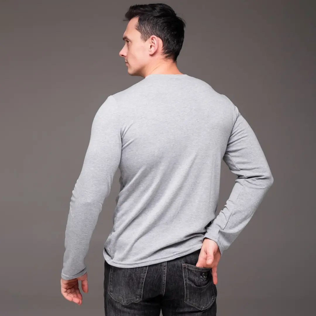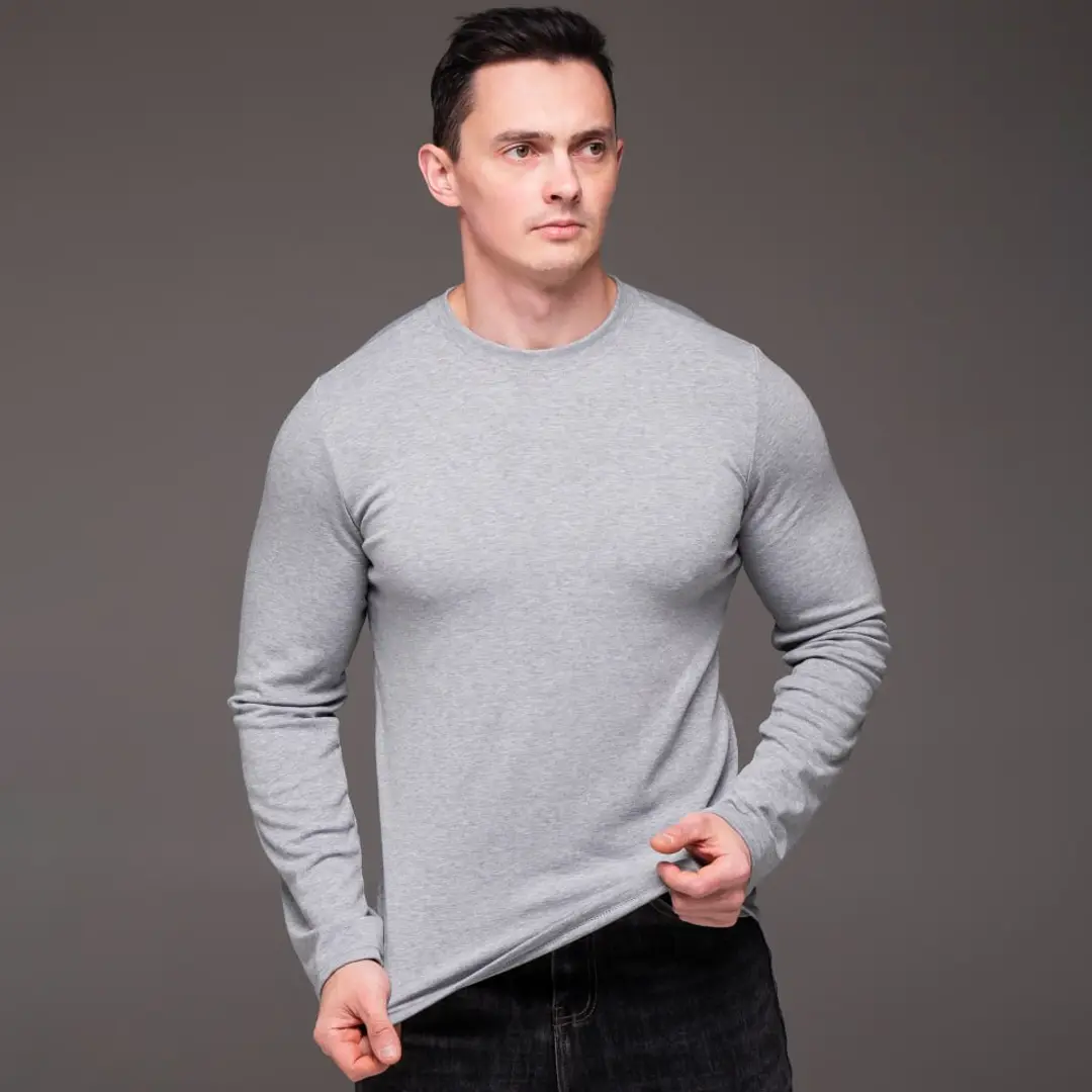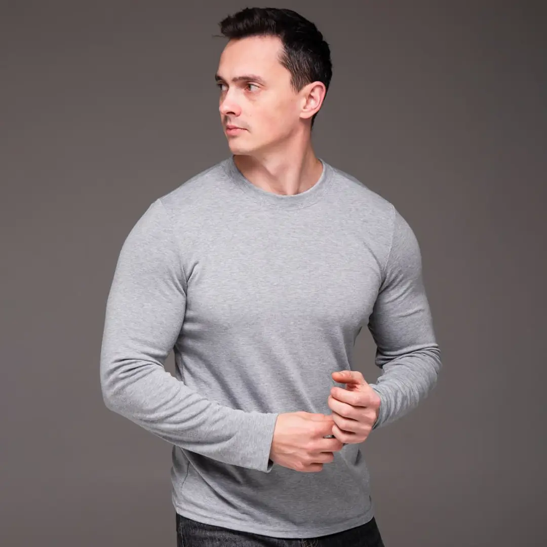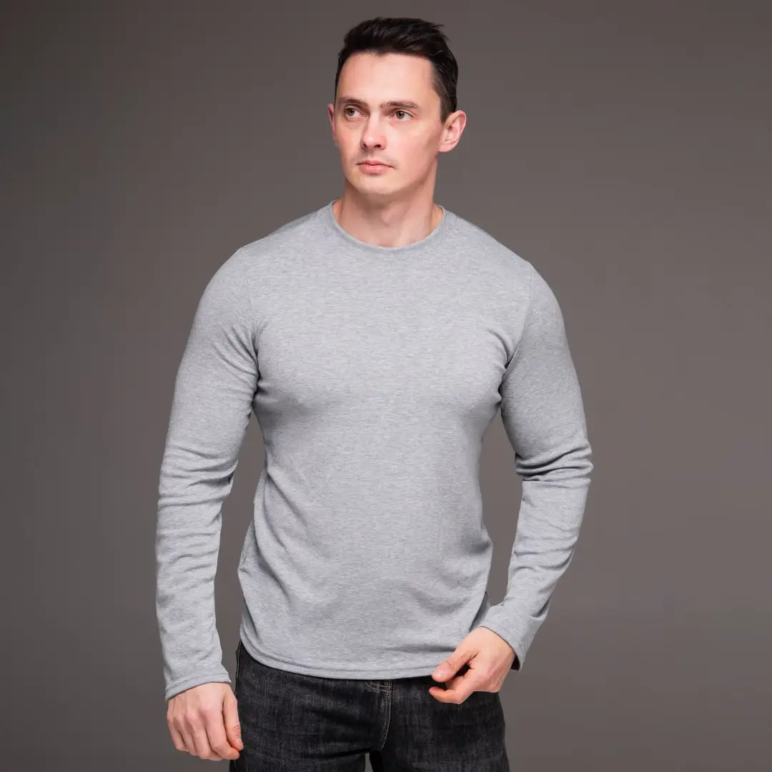 Базовий чоловічий однотонний лонгслів (сірий) підходить для офісу у вільному дрес-коді, прогулянок, занять спортом і щоденного носіння. Це функціональна річ, яка вирішує завдання будь-якого образу без зайвих зусиль. Правильна базова річ скорочує час на підбір одягу вранці й робить будь-який гардероб більш продуманим.