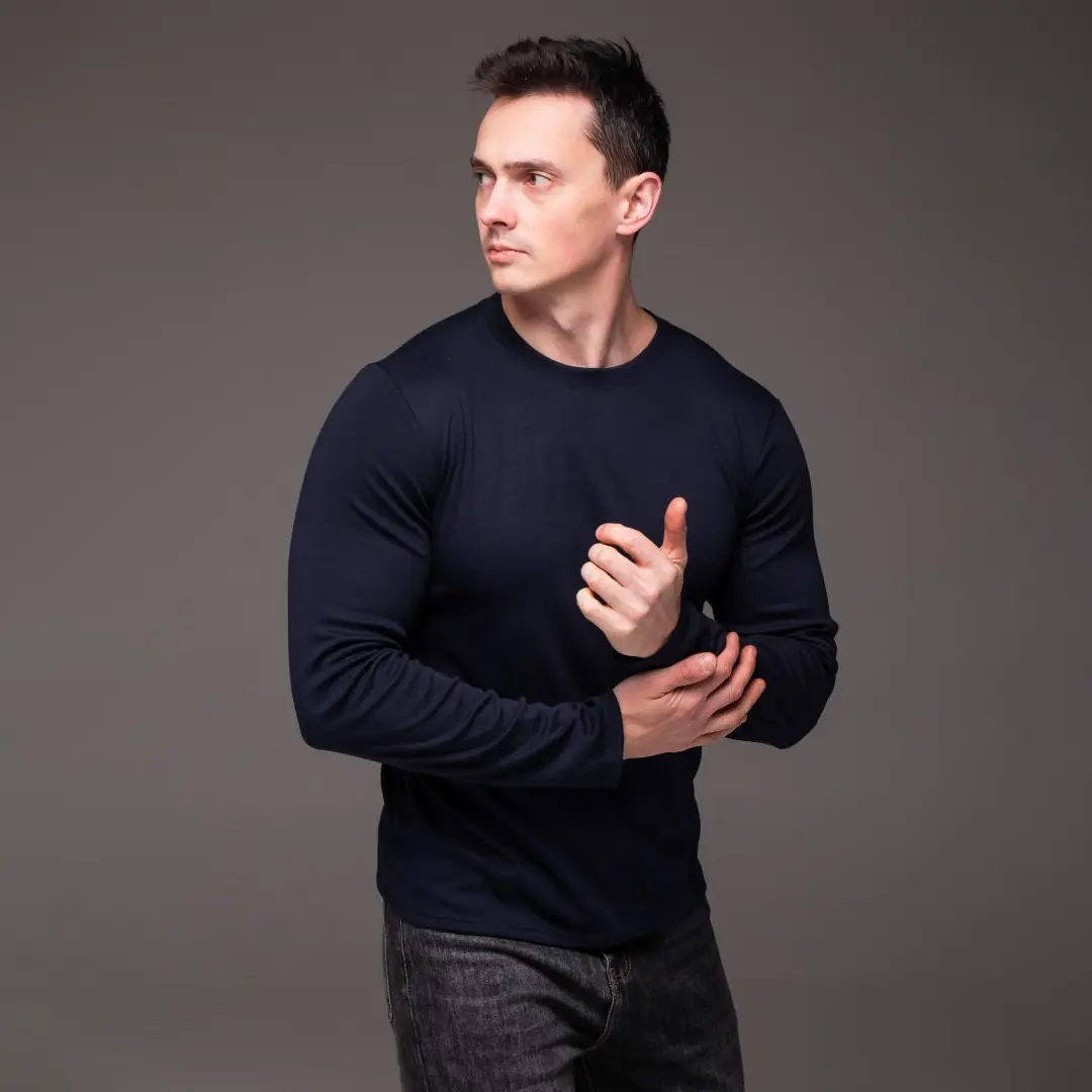 Базовий чоловічий однотонний лонгслів (синій) – це речі, яких не вистачає більшості чоловічих гардеробів. Він поєднує простоту форми з практичністю щоденного носіння. Саме такий лонгслів стає основою для десятків різних образів – від домашнього відпочинку до міських прогулянок.