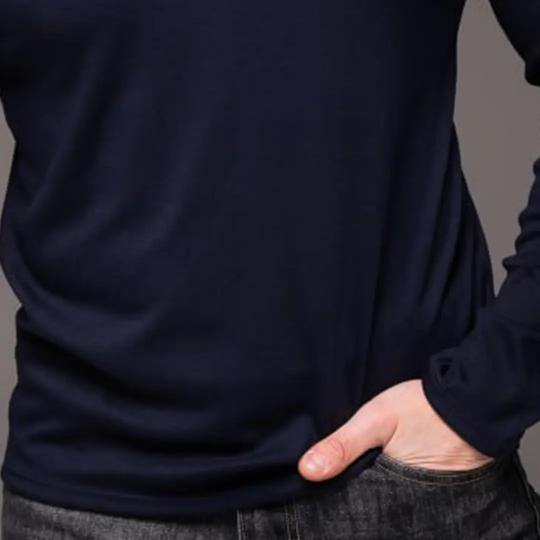 Базовий чоловічий однотонний лонгслів (синій) чудово поєднується з прямими джинсами або чіносами. Доповніть образ кросівками або черевиками – і повсякденний образ готовий. Для більш теплого шарування підійде накинута поверх вітровка або бомбер. Восени лонгслів носять під пальто або стьобану куртку як утеплювальний шар.