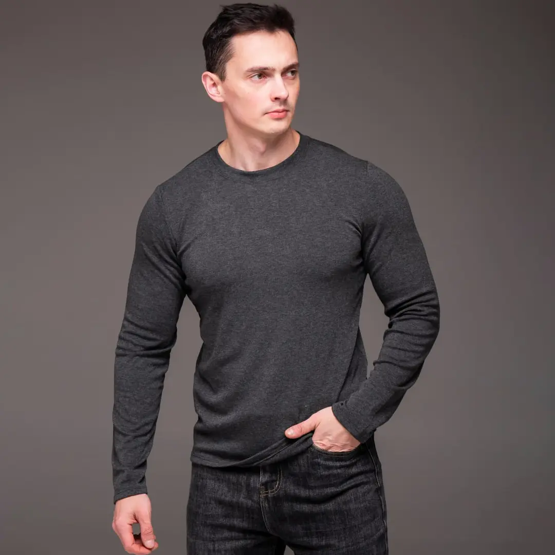 Базовий чоловічий однотонний лонгслів (темно-сірий) – це та річ, без якої сучасний гардероб чоловіка залишається неповним. Лаконічний крій, нейтральний колір і приємна тканина роблять його одним із найзручніших варіантів на кожен день. Він легко вписується в будь-який образ і не втрачає вигляду після багатьох прань.