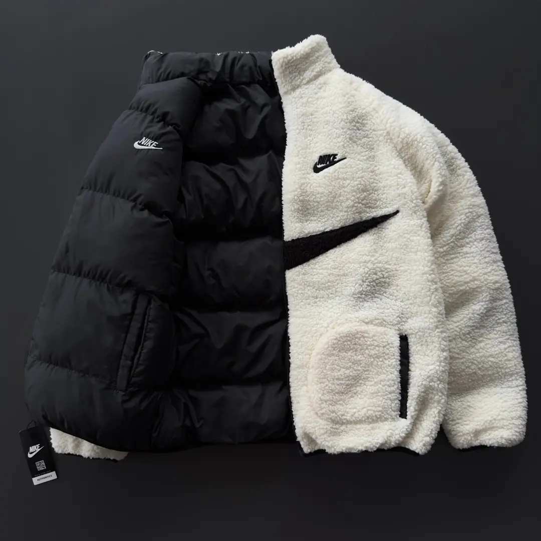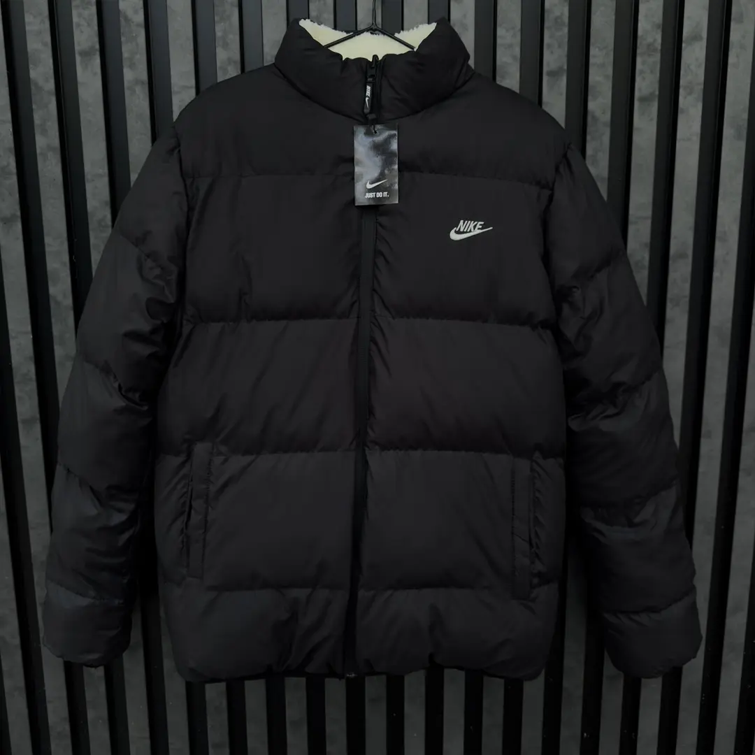 Чоловіча двостороння куртка Nike (чорно-біла) створена для тих, хто хоче тепла та комфорту взимку до -25°C. Ти отримуєш практичну річ у свій гардероб, яку легко підлаштувати під настрій та образ. Одна сторона виглядає стримано та лаконічно, друга додає більше контрасту й привертає увагу. Така модель підходить для щоденних виходів, прогулянок містом й активного дня.