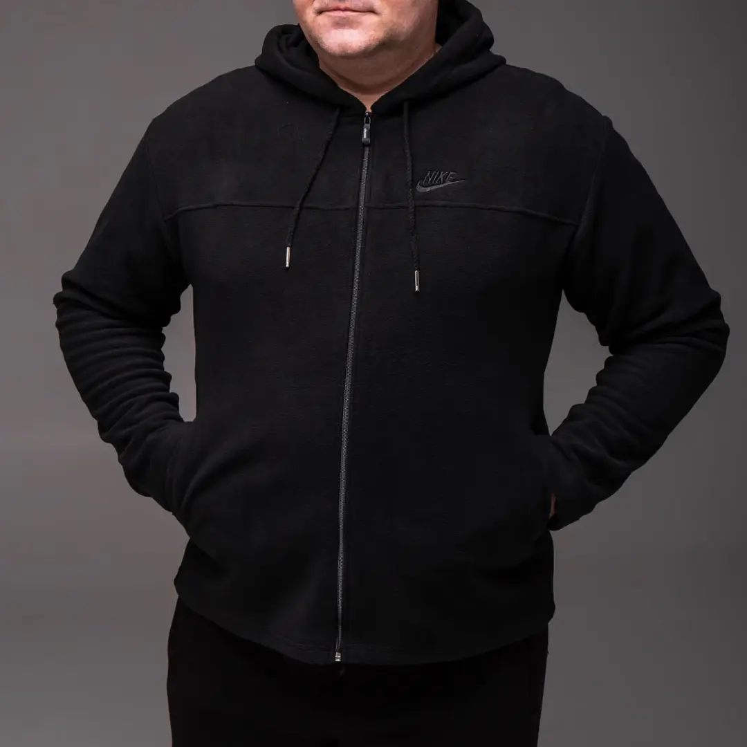 Чоловіча флісова кофта з капюшоном Nike БАТАЛ (чорна) – це ідеальний вибір для чоловіків великих розмірів, які цінують комфорт та практичність. Виготовлена з високоякісного флісу, ця кофта забезпечує тепло в прохолодну погоду та стане незамінною частиною вашого гардероба на осінь та весну.