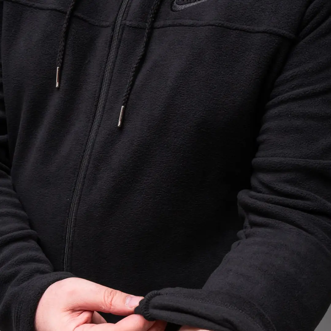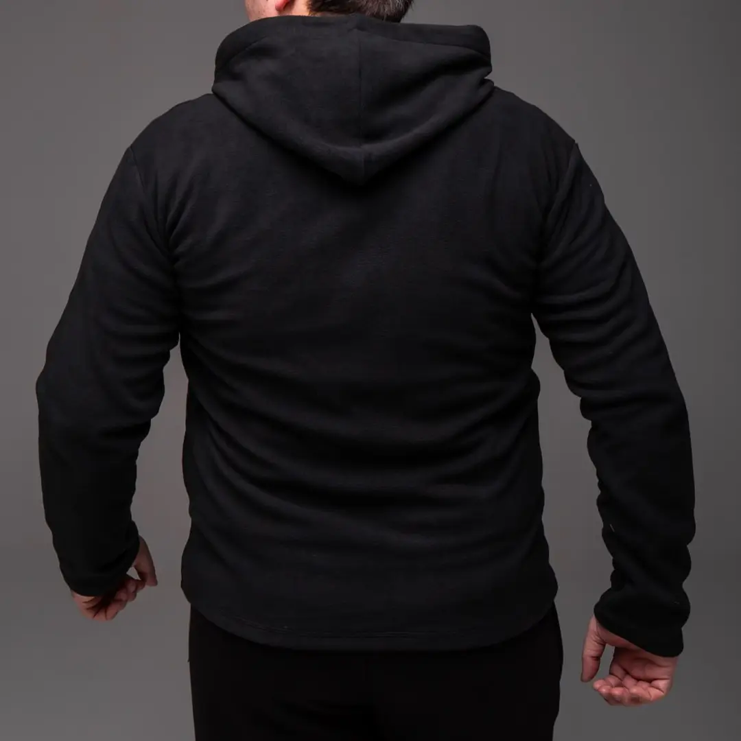 М’який поліестеровий фліс приємний до тіла та відмінно зберігає тепло, при цьому дозволяє шкірі дихати. Матеріал не втрачає форму після прання та зберігає презентабельний вигляд навіть після тривалого носіння. Чорний колір робить цю кофту універсальною – вона легко поєднується з будь-яким одягом у вашому гардеробі.