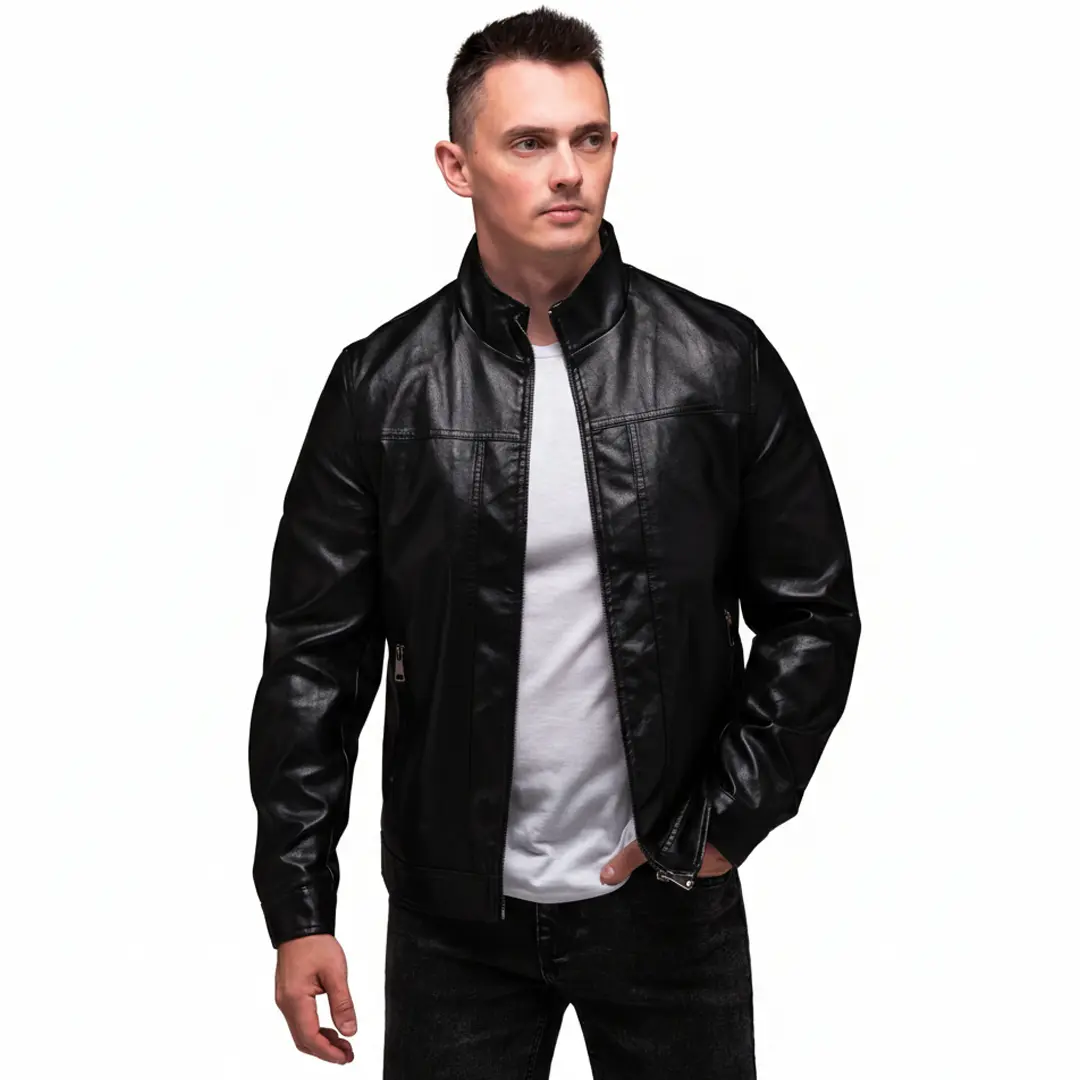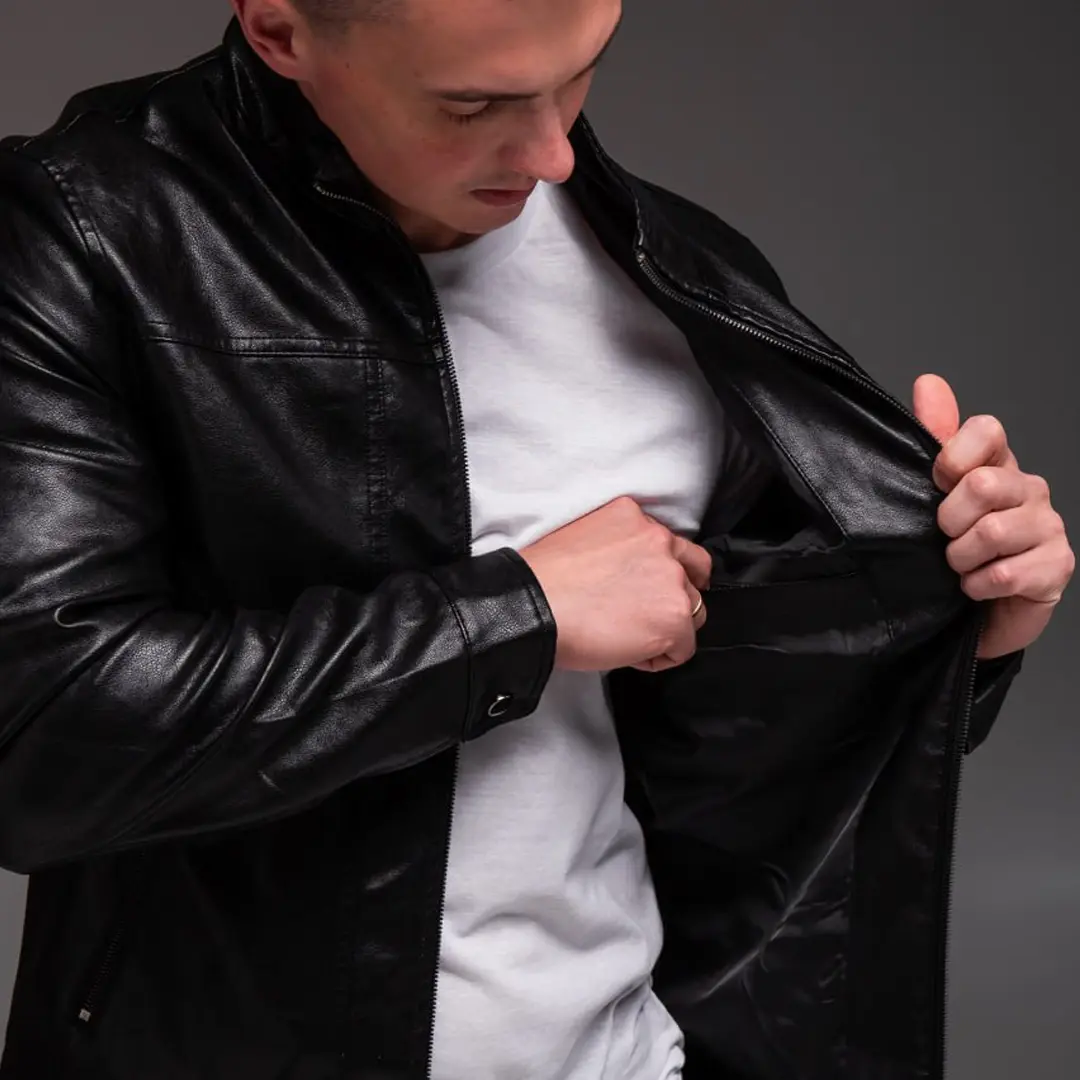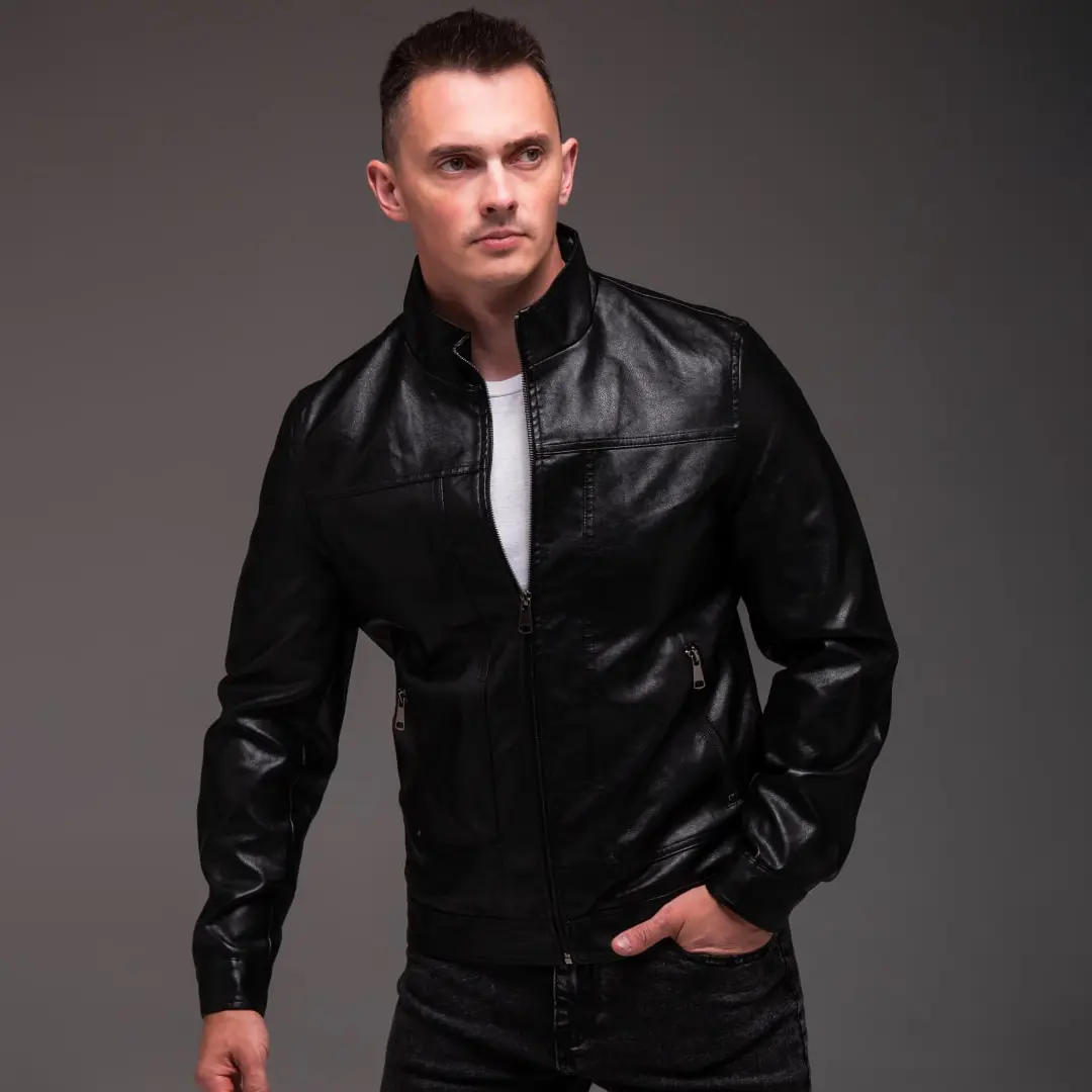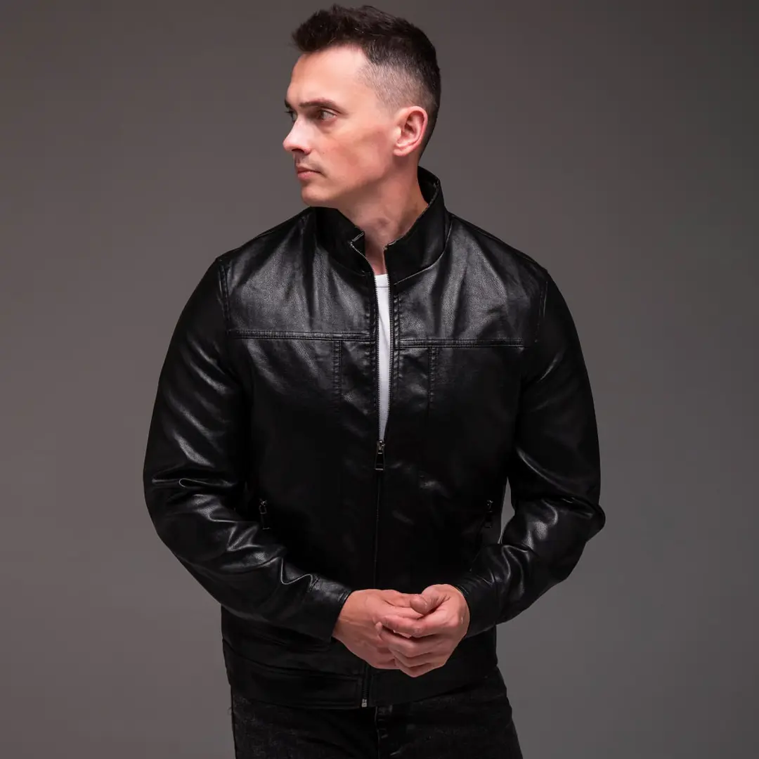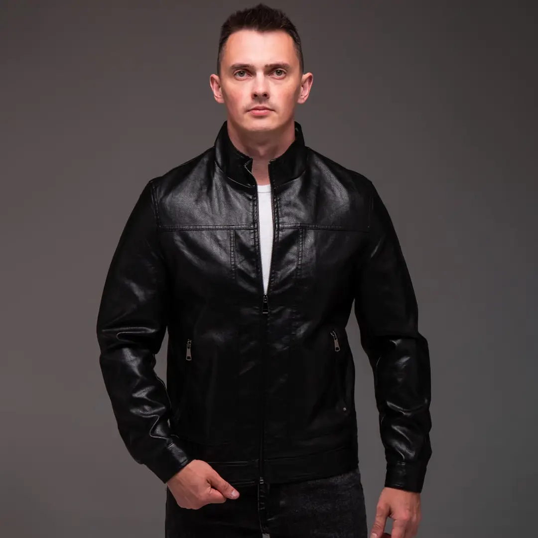 Чоловіча шкіряна куртка “Prime” (чорна) – це стильне рішення для сучасного гардероба, яке поєднує практичність та елегантний зовнішній вигляд. Класична модель з коміром-стійкою підкреслює мужність силуету та додає образу характеру. Виріб виготовлений з якісної штучної шкіри, що забезпечує комфортне носіння в прохолодну погоду.