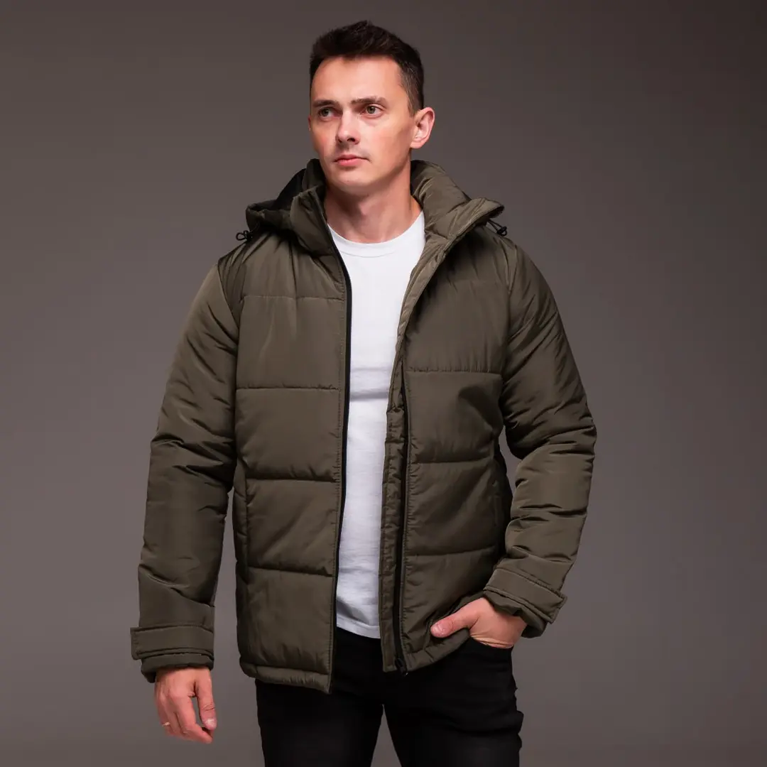 Чоловіча утеплена зимова куртка Casual (зелена) – це практичне рішення для холодної пори року, яке поєднує комфорт і сучасний стиль. Модель виготовлена з якісного поліестеру, що забезпечує надійний захист від вітру та вологи. Утеплювач з силіконізованого синтепону (200 г/м²) зберігає тепло навіть у найсуворіші морози, тому ви почуватиметеся затишно під час прогулянок містом або активного відпочинку на природі.