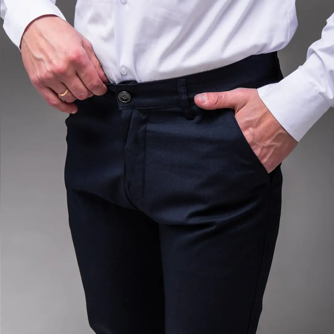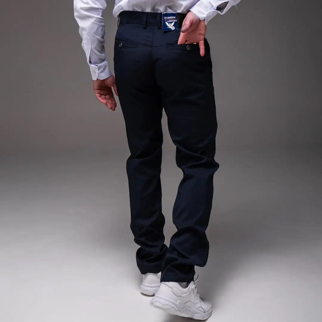 Модель має продуманий крій з двома бічними та двома задніми кишенями. Це робить чоловічі брюки LS котон (темно-сині) зручними для щоденного носіння. Кишені достатньо глибокі для смартфона, гаманця та ключів. Якісні шви витримують активне використання.