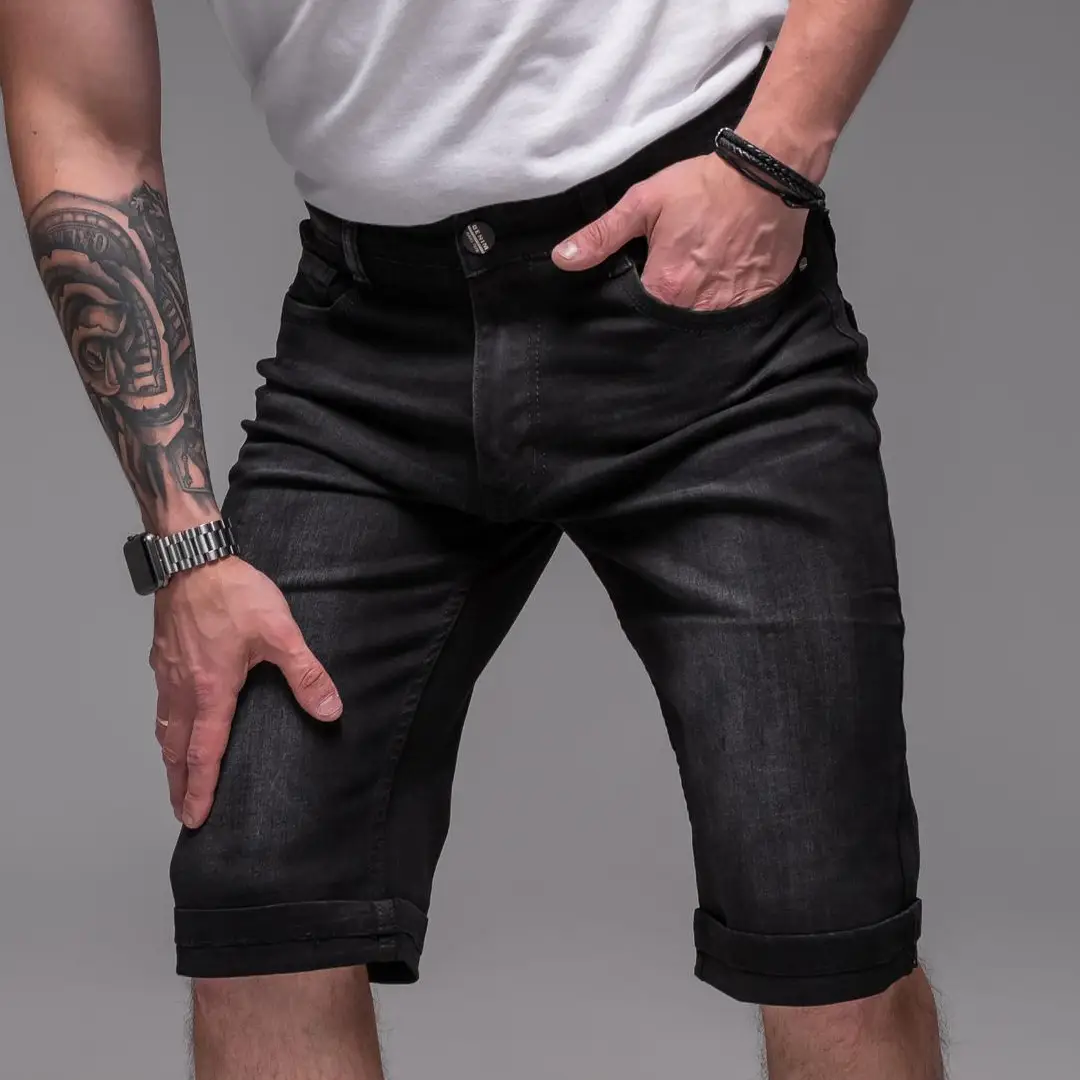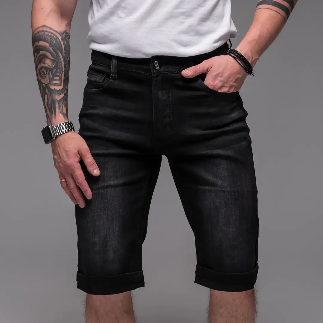 Чоловічі джинсові шорти подовжені (чорні)
