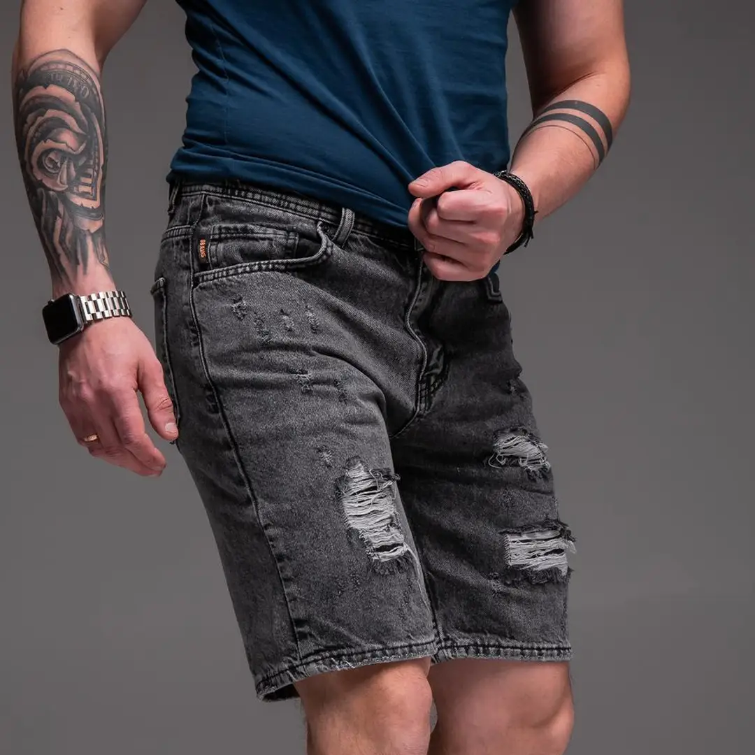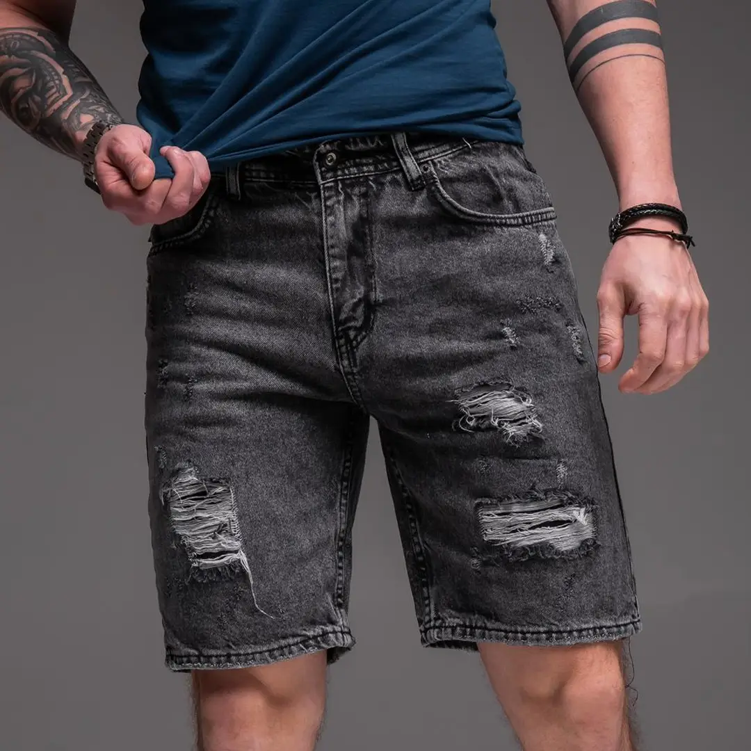 Чоловічі джинсові шорти рвані (сірі) – це саме той літній одяг, який поєднує в собі стиль і комфорт. Вони підходять для активного відпочинку, прогулянок містом або повсякденного носіння в теплу пору року. Сірий колір виглядає свіжо і сучасно, а рвані деталі додають образу характеру та динаміки.