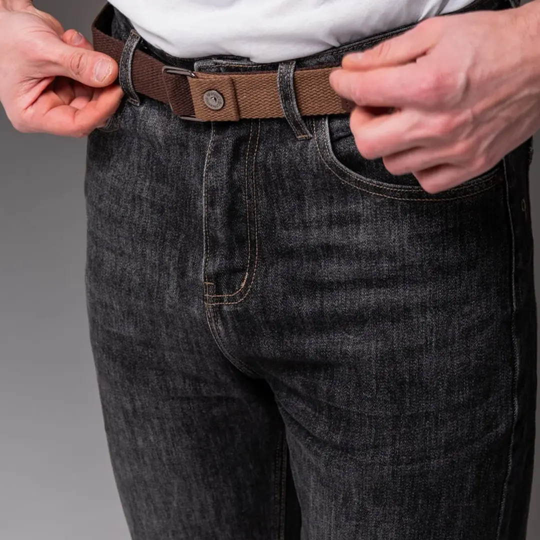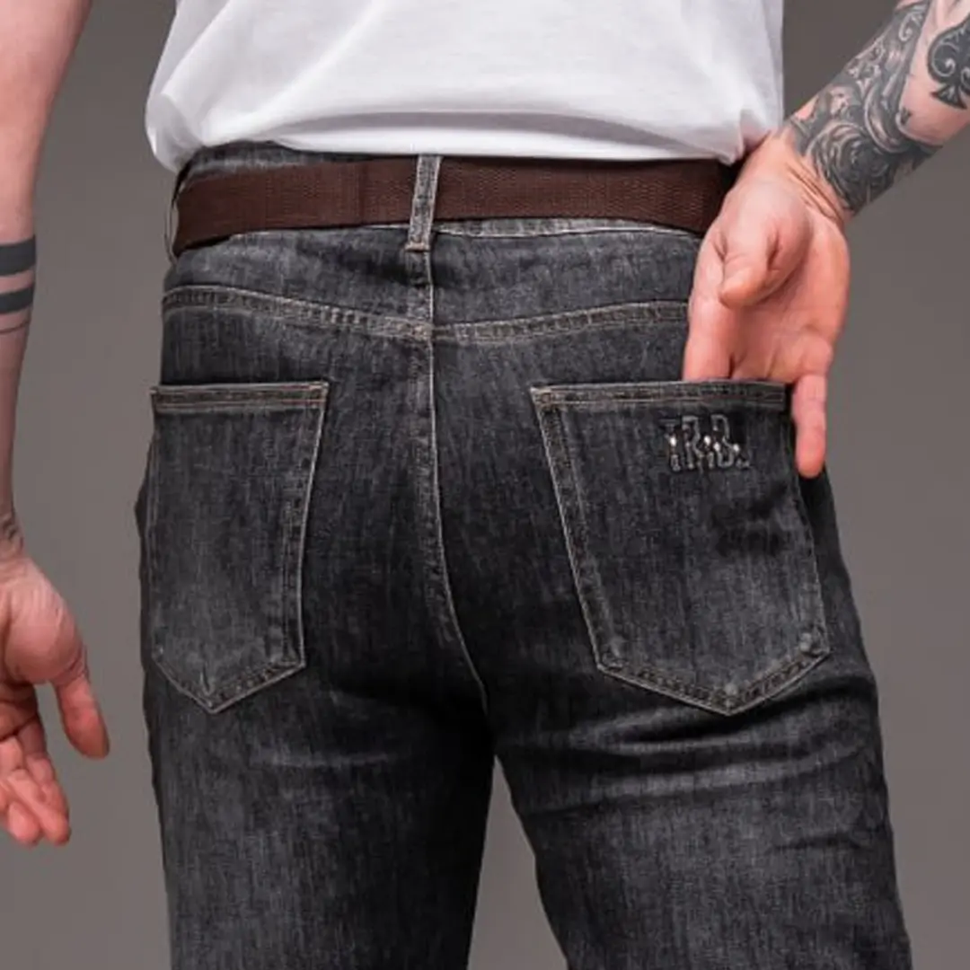 Демісезонні чоловічі джинси зі стрейч-бавовни носять із білою або темною футболкою, сорочкою в клітинку, худі або лайтовою курткою. Для завершення образу підійдуть кросівки, черевики чи лофери. Така комбінація виглядає доречно як на прогулянці, так і на зустрічі з друзями або в офісі з вільним дрес-кодом.