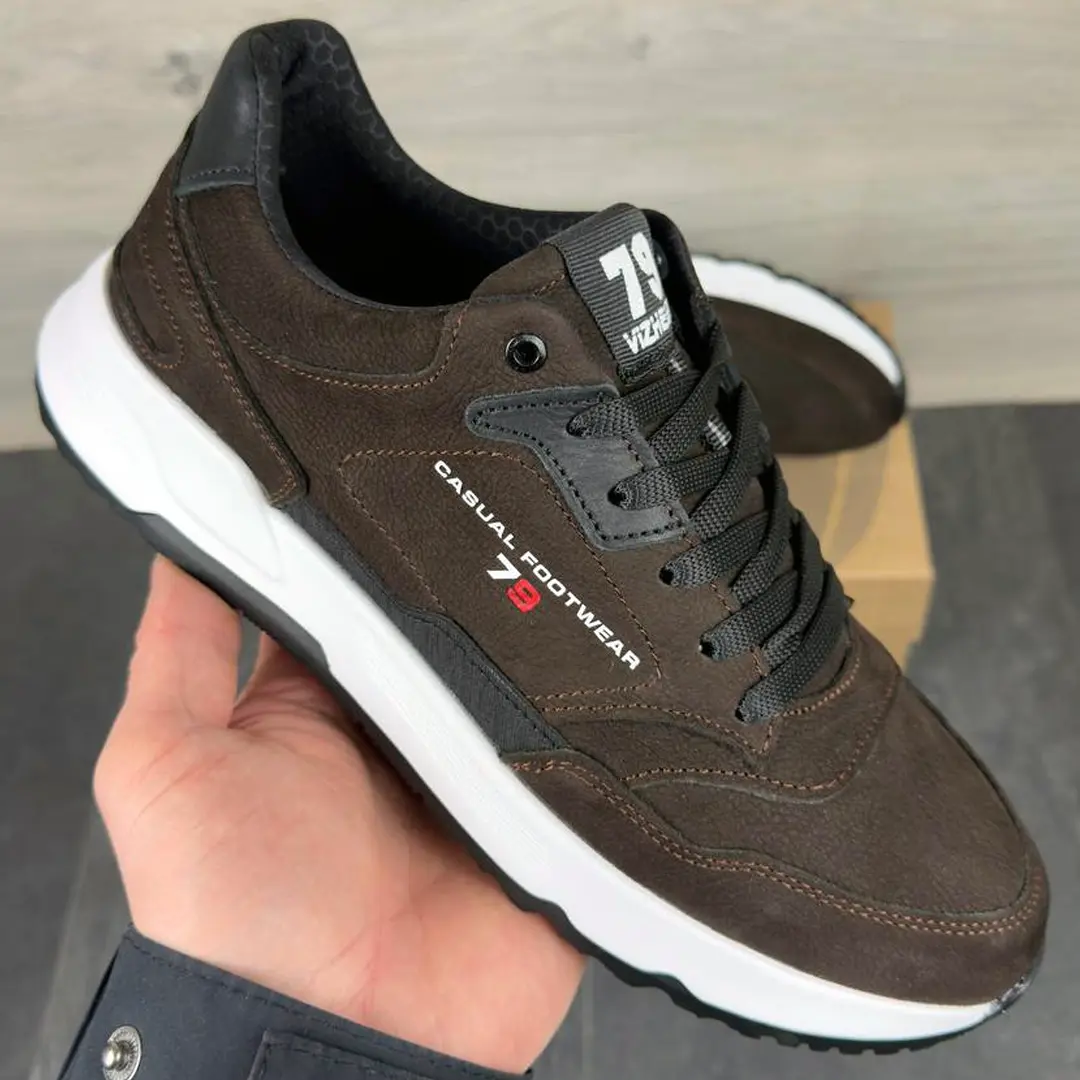 Чоловічі кросівки Vizhelini 02-14 (коричневі) розраховані на сезон весна-осінь. Вони не вимагають особливого догляду і швидко вписуються у будь-який гардероб – від мінімалістичного до більш вираженого стилю.