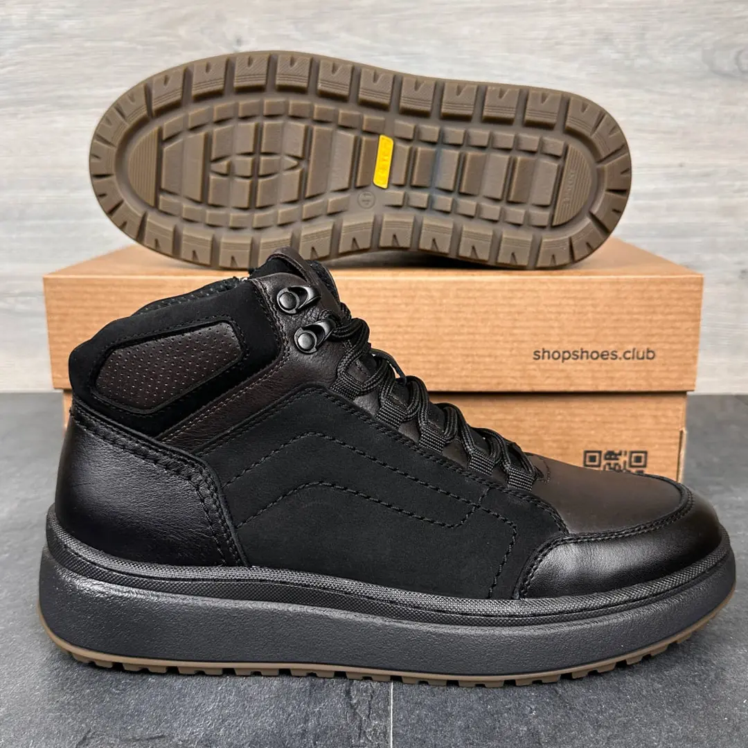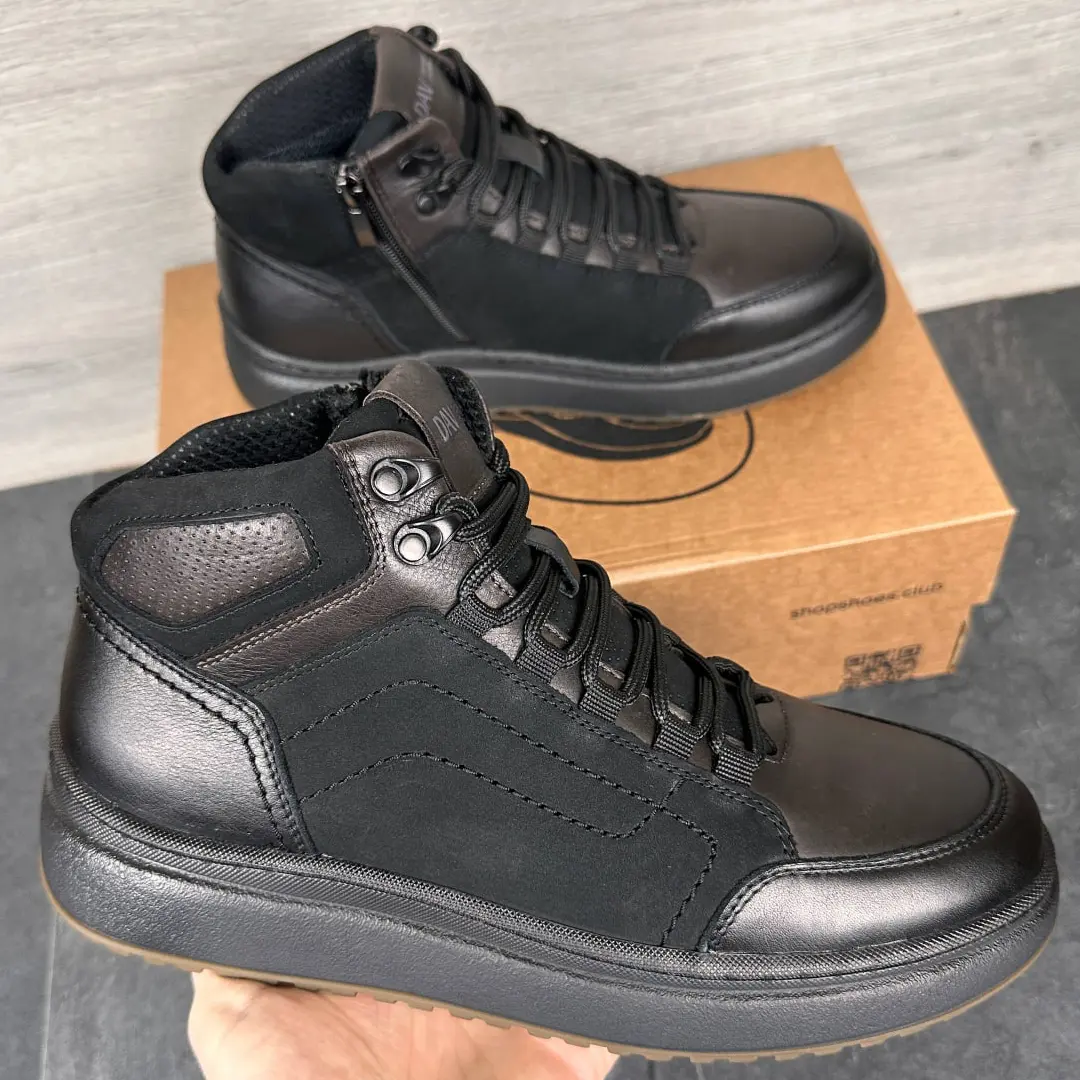 Верх виконаний з натуральної шкіри, яка добре тримає форму та не пропускає вологу. Усередині використана термо-тканина гортекс, що утримує тепло і дозволяє шкірі дихати. Ноги залишаються сухими навіть після довгих прогулянок. Підошва з термополіуретану прошита, тож вона не розклеїться й не трісне за зими.