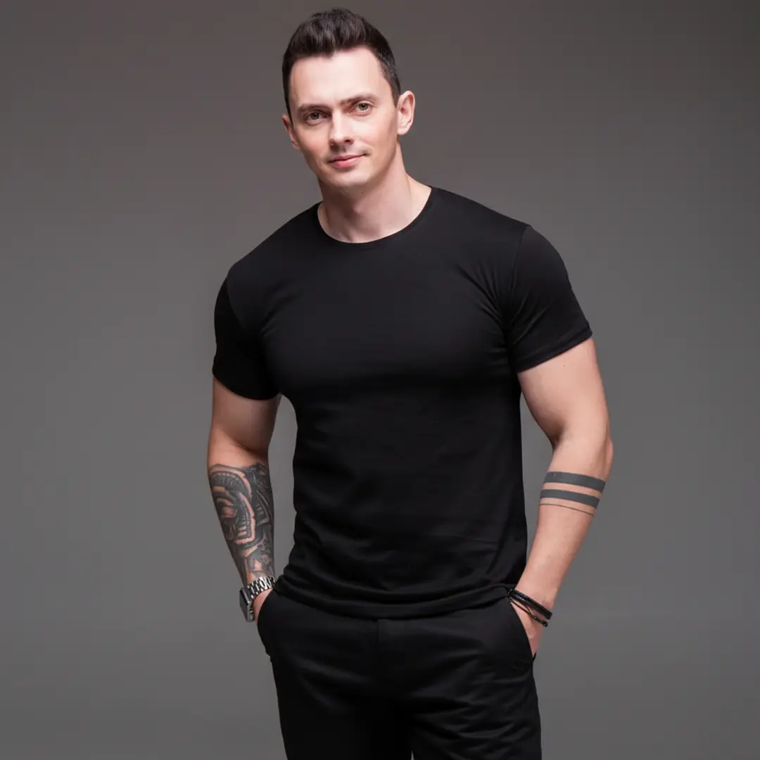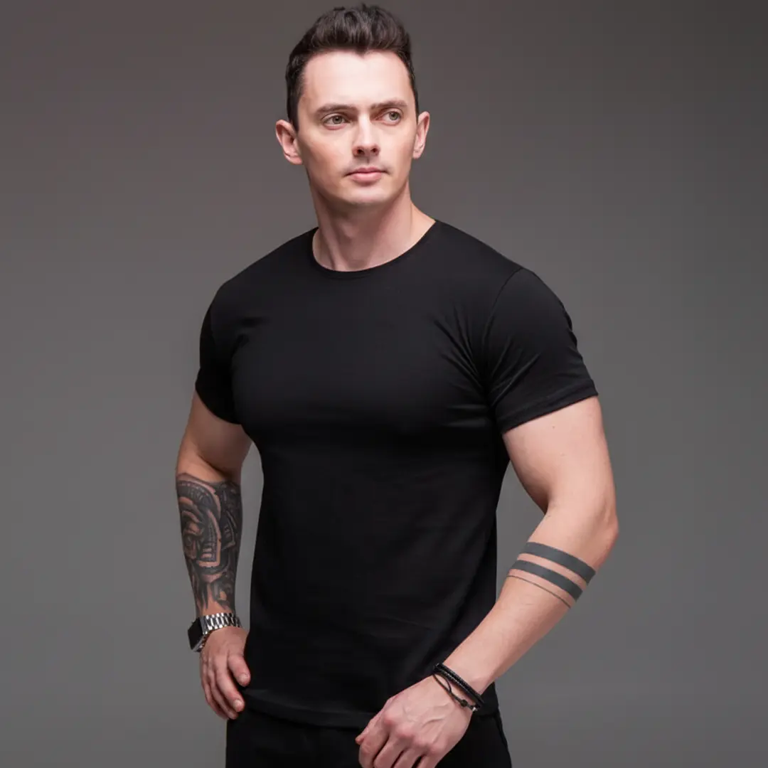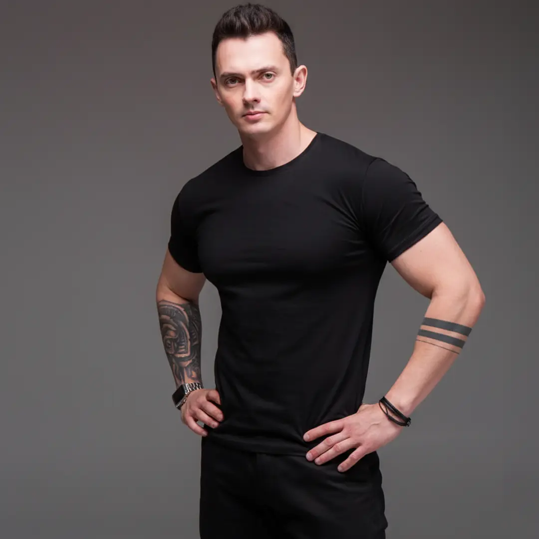 Футболка чудово поєднується з джинсами, чиносами або спортивними штанами. Для офісного стилю доповніть образ класичними брюками та піджаком. Casual look створіть за допомогою шортів та кросівок. Чорна чоловіча футболка базова, бавовна стане відмінною базою під шкіряну куртку або бомбер у прохолодну погоду.