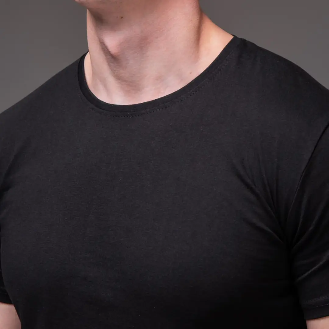 Чорна чоловіча футболка базова, бавовна – це універсальний елемент гардеробу, який поєднує комфорт та стиль. Модель виготовлена зі 100% натурального бавовняного полотна, що забезпечує відмінну повітропроникність та приємні відчуття під час носіння. Тканина м’яка на дотик, не викликає подразнень шкіри та зберігає свої властивості навіть після численних прань.
