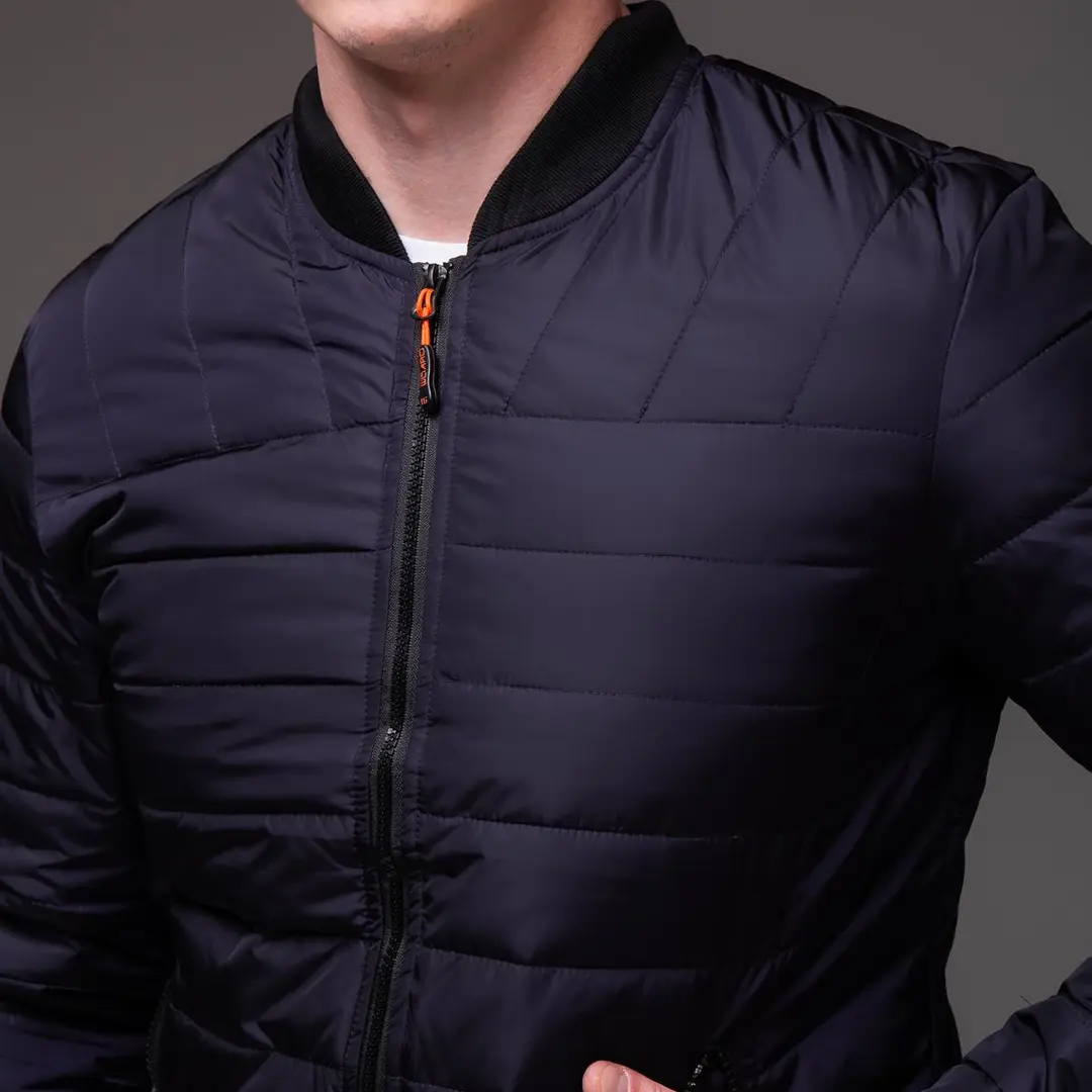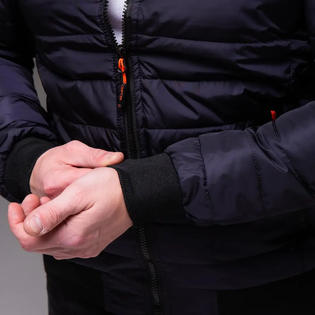 Матеріал бомбера – м’яка плащівка, що захищає від вітру та легких опадів. Усередині використаний утеплювач холлофайбер 100, який добре тримає тепло, але залишається легким. Манжети, пояс і рукава виконані з еластичної гумки, що забезпечує зручну посадку та додає комфорту під час носіння.