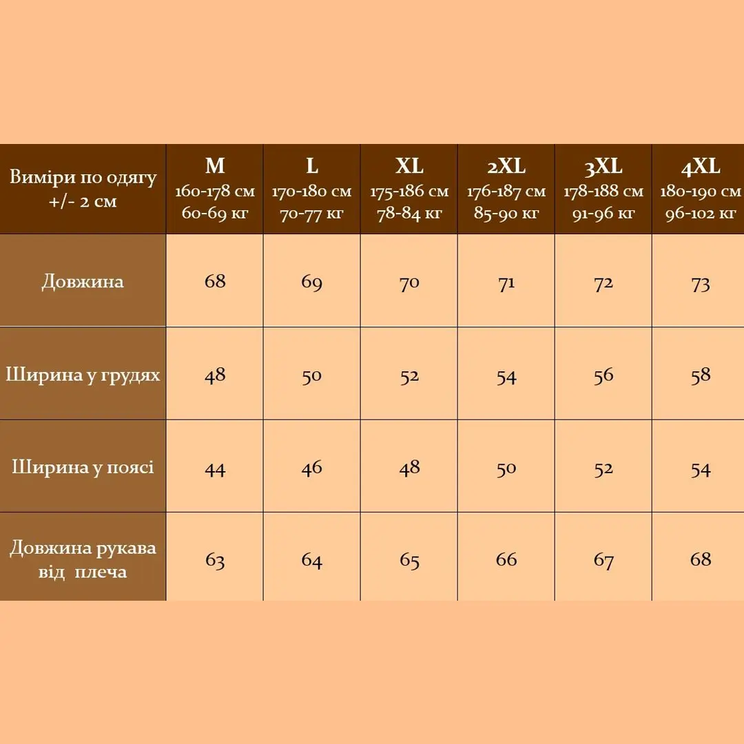 Розміри: M, L, XL, 2XL, 3XL, 4XL (маломірять)
