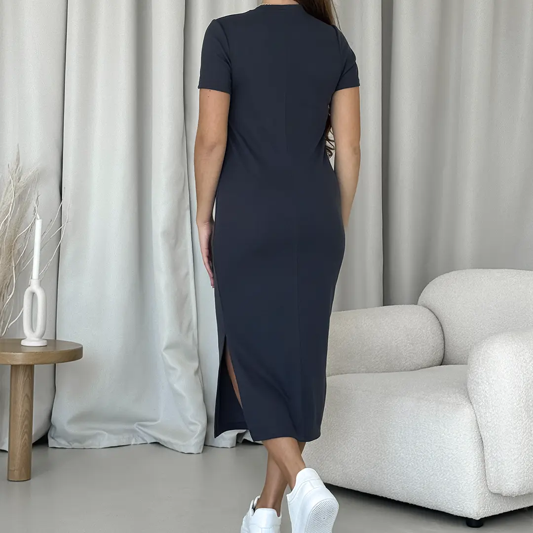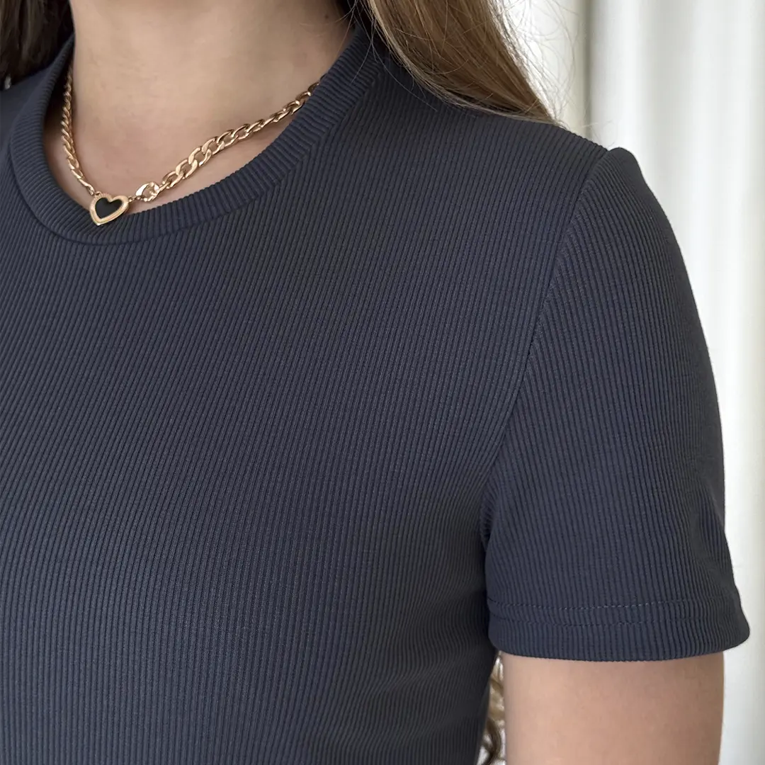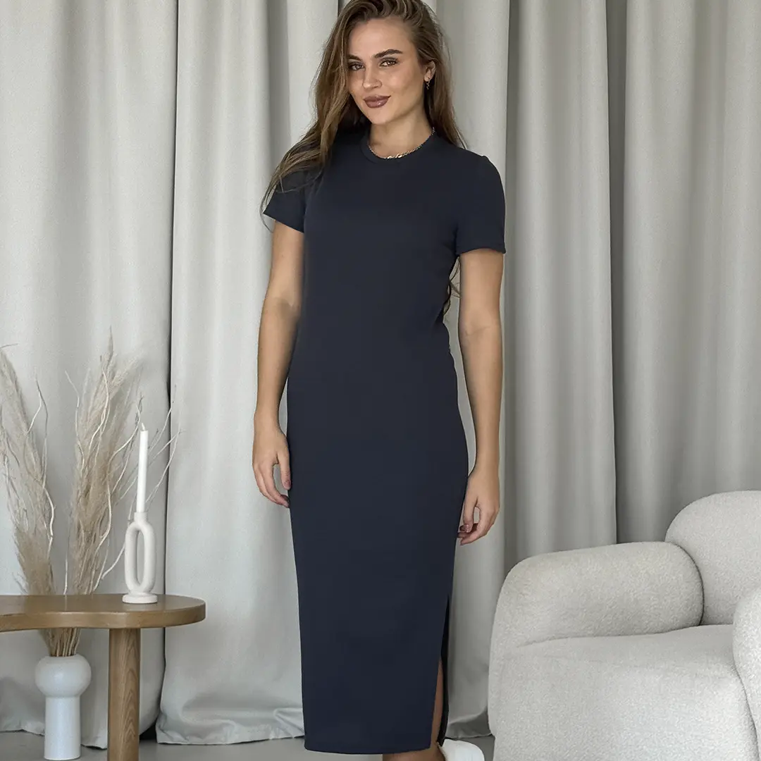 Довга сукня-футболка в рубчик Merlini Кассо (графіт)