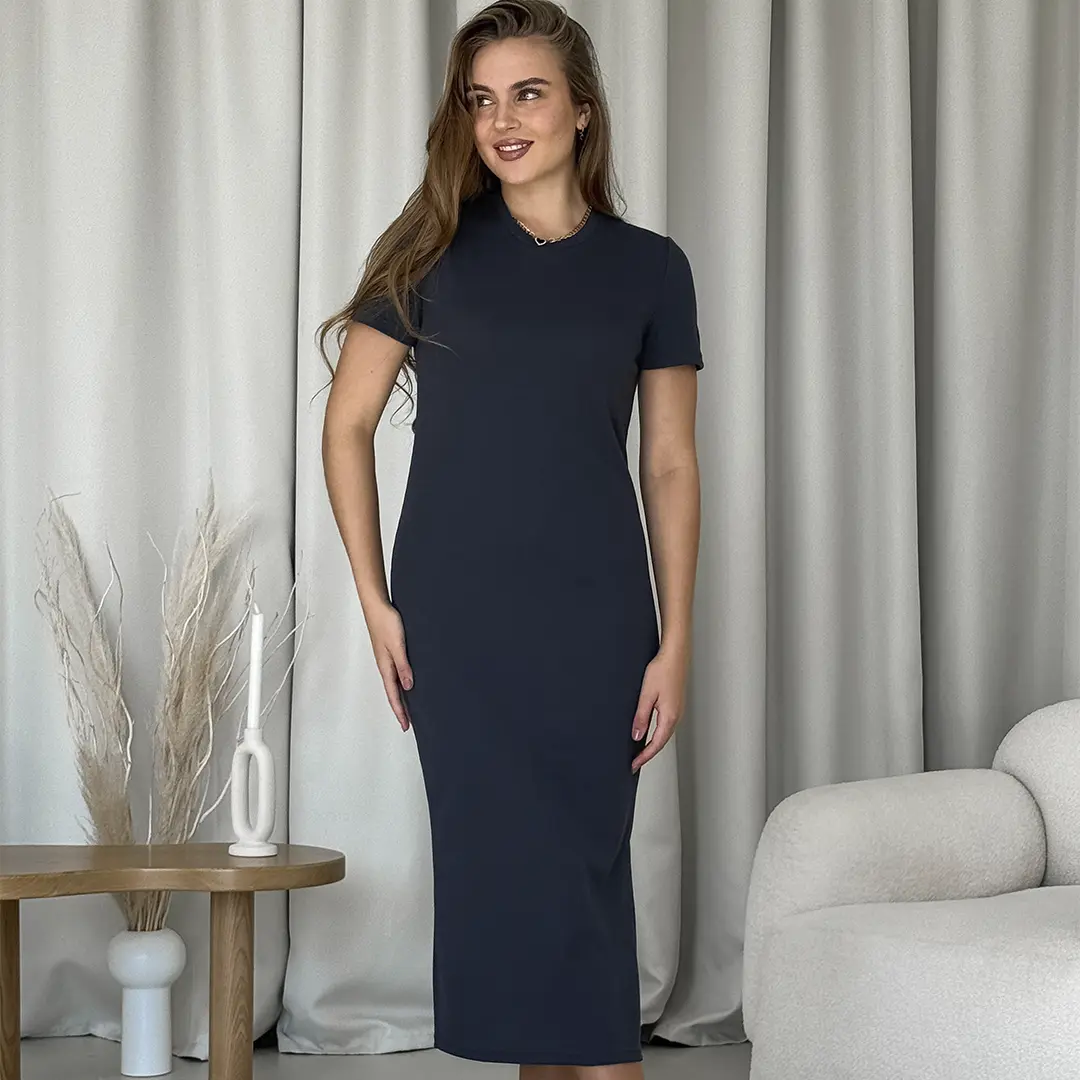 Сукня виготовлена з турецького рубчика на бавовняній основі. Матеріал приємний на дотик, м’який і дихає. Висока еластичність тканини забезпечує комфорт навіть у спеку. Полотно не просвічується і не кошлатиться після прання. Це практичний вибір на кожен день.