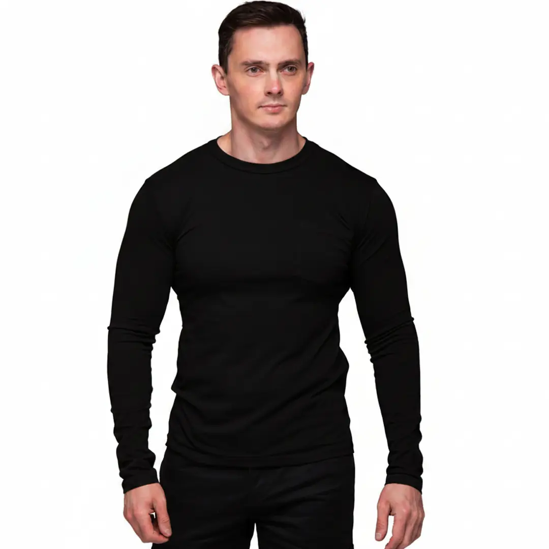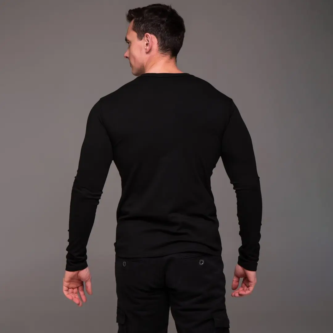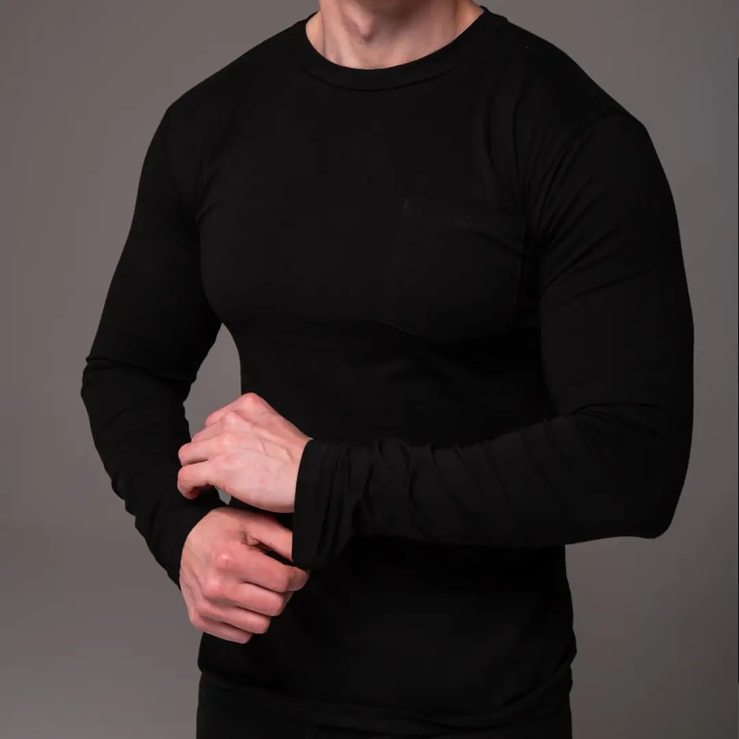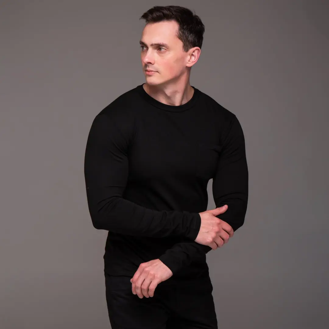 Футболка з довгими рукавами лонгслів з кишенею (чорна) підійде тим, хто цінує комфорт, простоту та практичність. Модель актуальна для міських прогулянок, тренувань у залі, роботи або відпочинку вдома.
