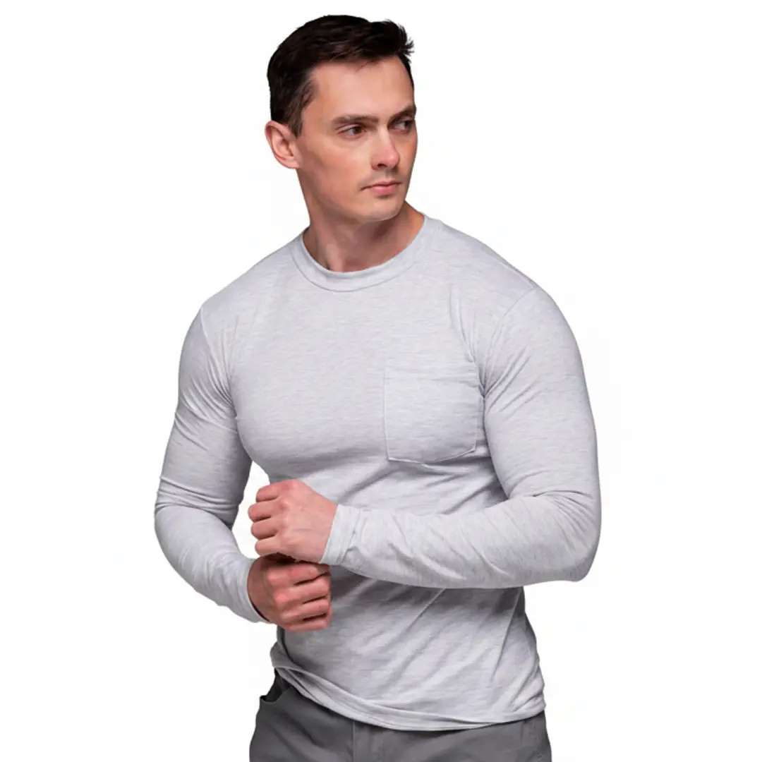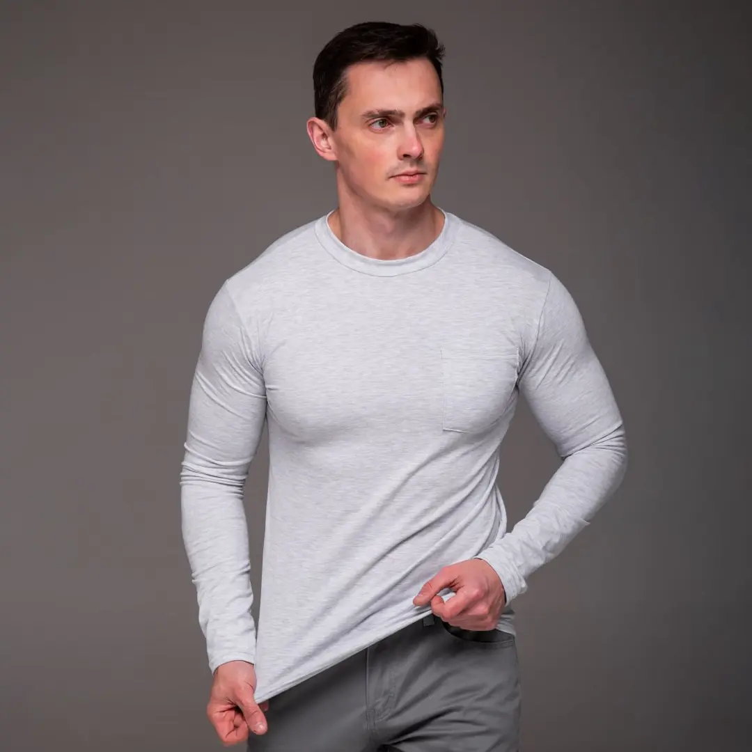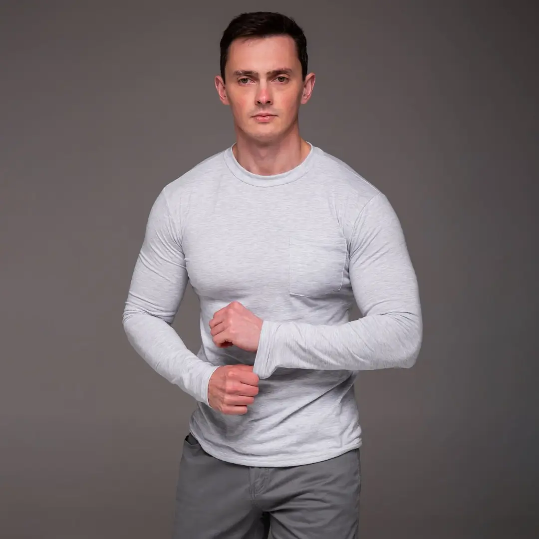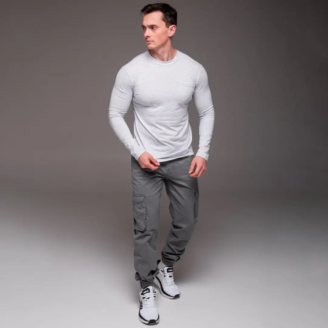 Футболка з довгими рукавами лонгслів з кишенею (сіра) – це та річ, яку хочеться носити щодня. Вона не займає багато місця в гардероб і при цьому вирішує одразу кілька завдань: зігріває, виглядає акуратно та зручна у русі. Базовий трикотаж такого типу завжди залишається актуальним незалежно від трендів.