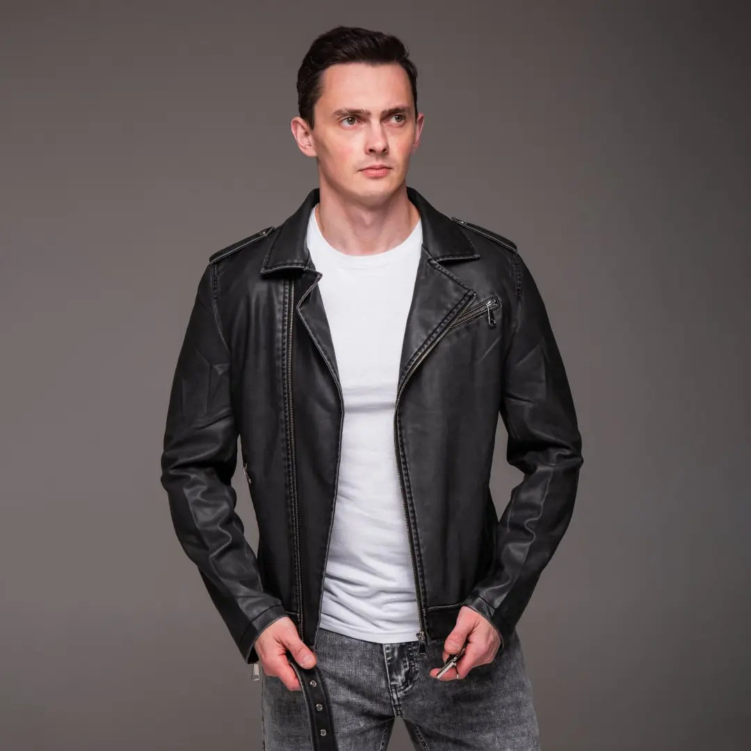 Косуха чоловіча м’яка еко-шкіра (графіт) – це саме той виріб, який перетворює звичайний образ на впевнений стиль. Графітовий відтінок виглядає стримано і сучасно, підходить як для повсякденних виходів, так і для вечірніх зустрічей.