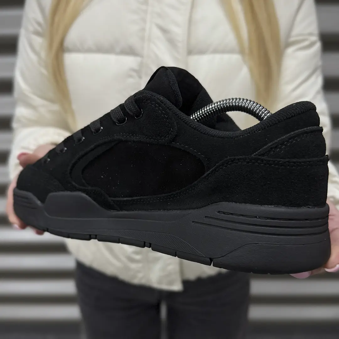 Кросівки мають чистий силует у стилі streetwear. Чорний total-black колір підходить до широких джинсів, карго-брюк, спортивних штанів та лаконічних шортів. Таке взуття легко вписати у твій повсякденний стиль. Кросівки не відволікають від образу, а підкреслюють його.