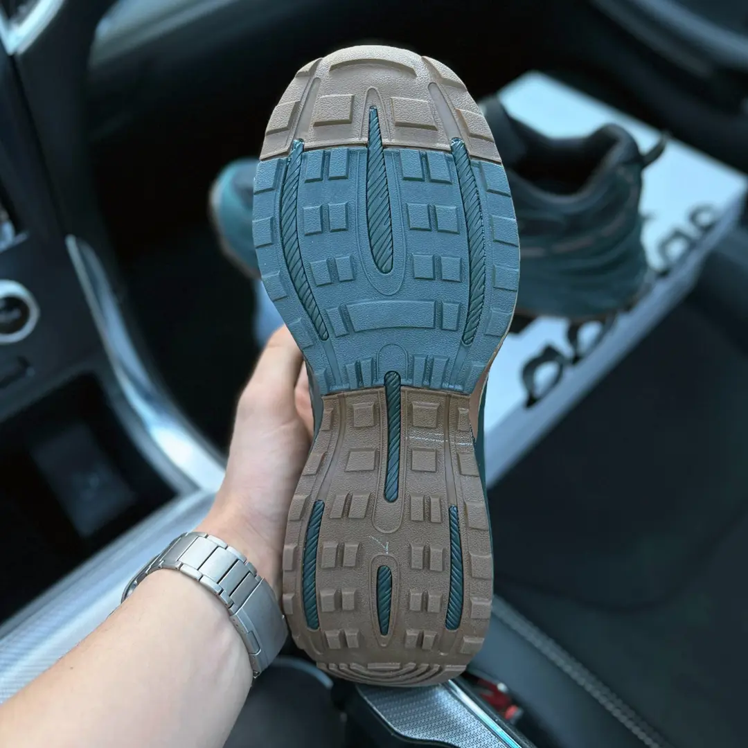 Верх кросівок виконаний із комбінації дихаючої сітки Mesh, еко-замші та полімерних елементів. Така конструкція гарантує відмінну вентиляцію стопи навіть під час тривалих прогулянок або фізичних навантажень. Сітчастий матеріал пропускає повітря, запобігаючи перегріву та появі неприємних відчуттів. Вставки з еко-замші додають моделі преміального вигляду та захищають від механічних пошкоджень.