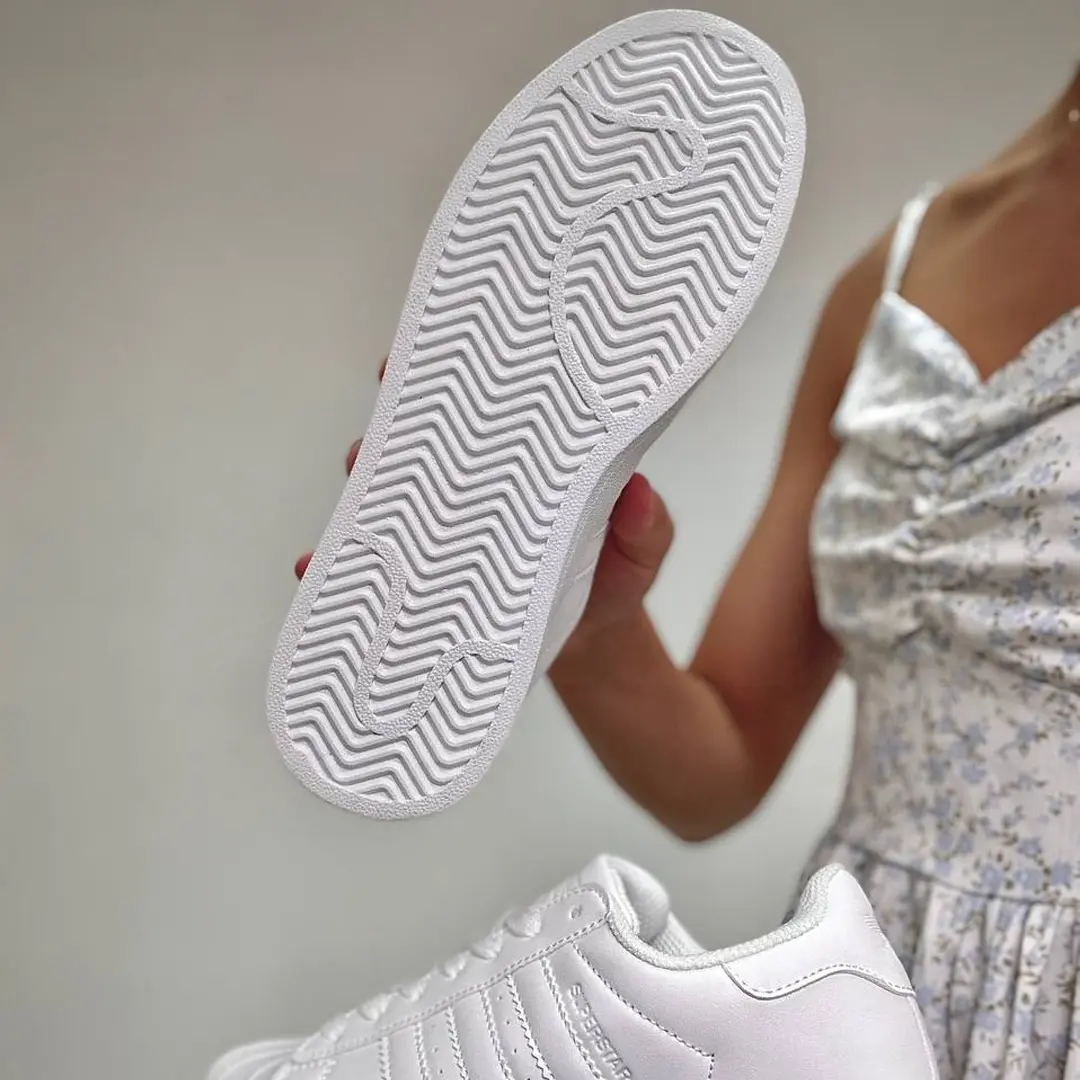 Білий колір зберігає відчуття легкості та свіжості, а мінімалістичний дизайн додає елегантності. Ці кросівки можна назвати класикою, яка завжди залишається актуальною. Незалежно від тенденцій моди, Adidas Superstar залишаються впізнаваними та трендовими.