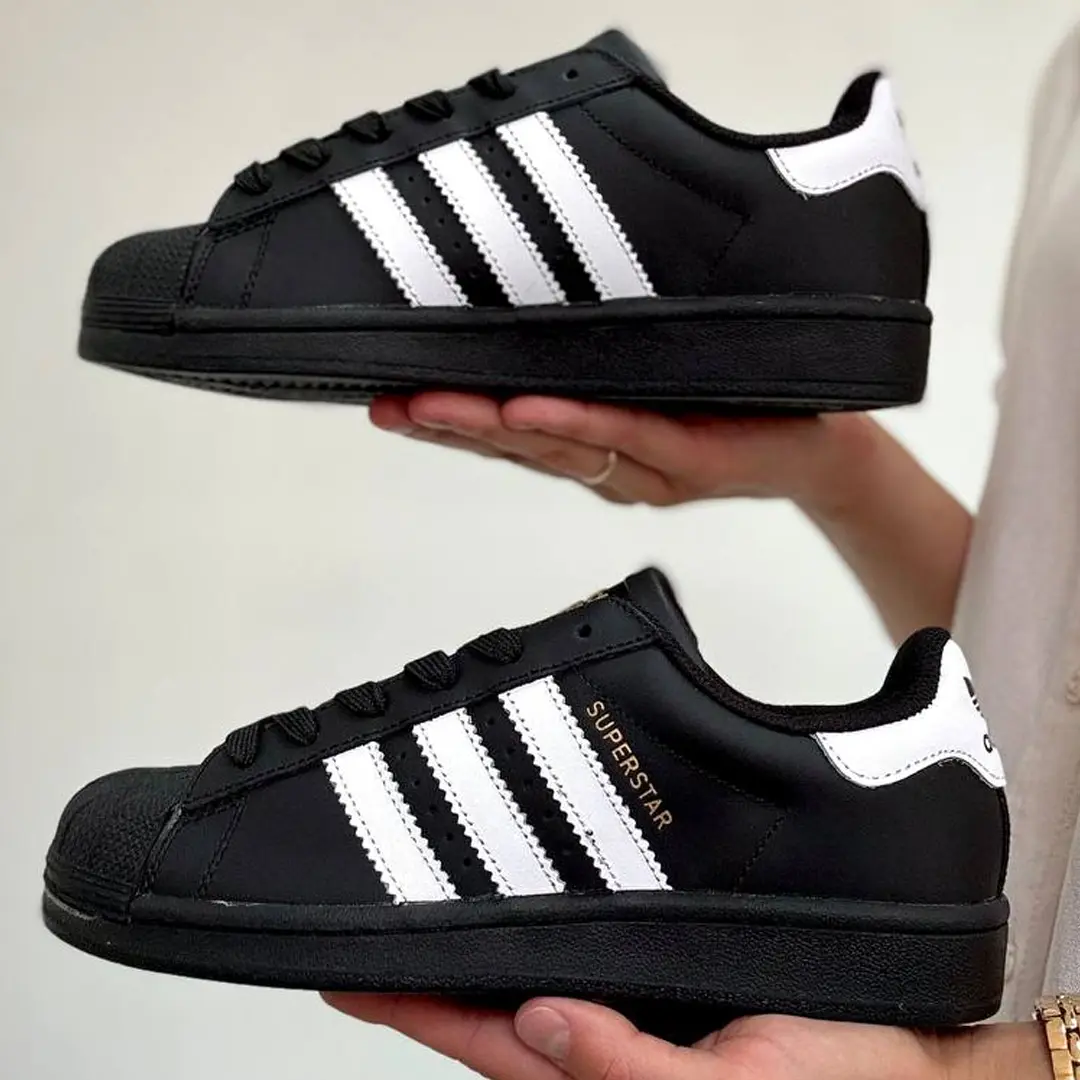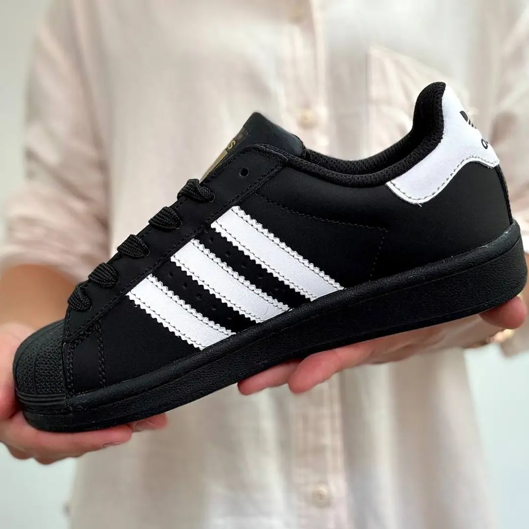 Кросівки Adidas Superstar (black) – це класика спортивного стилю, яка не виходить з моди вже десятиліттями. Чорний колір робить їх універсальними: вони органічно вписуються в будь-який образ – від повсякденного до напівспортивного. Якщо ви шукаєте взуття, яке поєднує комфорт і стиль, ця модель стане ідеальним вибором для вашого гардеробу.