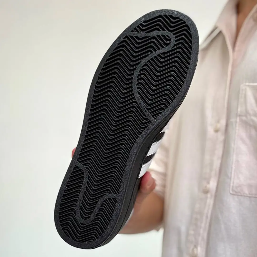 Adidas Superstar (black) чудово доповнюють прямі та завужені джинси, спортивні штани з манжетами, а також трикотажні лосини. З верху добре поєднуються оверсайз-худі, бомбери та коротші куртки. Для завершеного образу підберіть однотонні шкарпетки у контрастному або нейтральному кольорі. Чорний колір підошви та верху дозволяє вільно комбінувати кросівки з різними кольорами одягу – від білого до насичено-синього. Ця модель органічно вписується як у спортивний гардероб, так і в повсякденний casual-стиль.