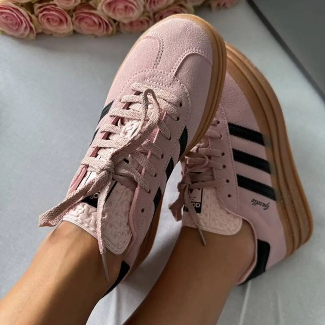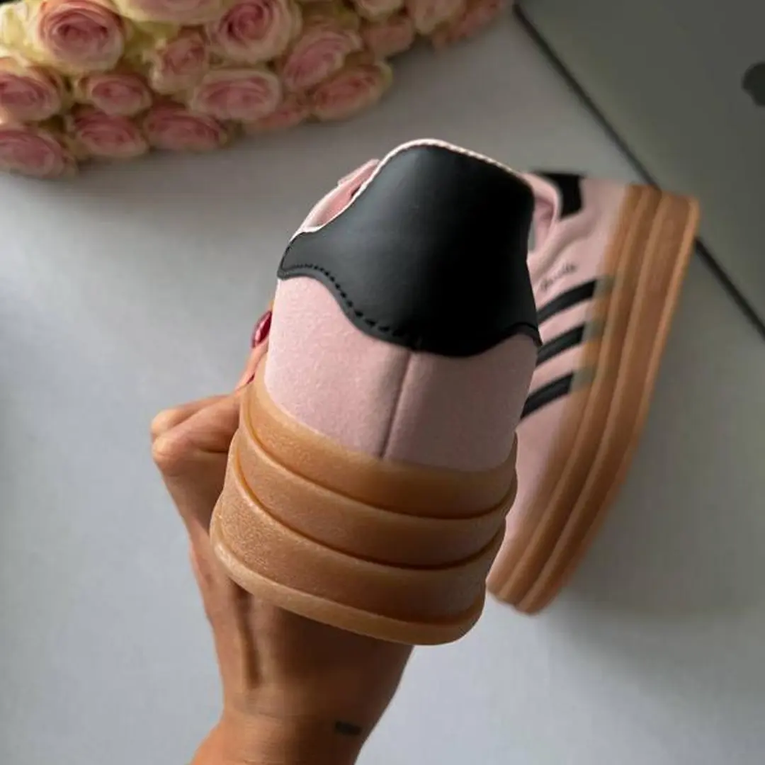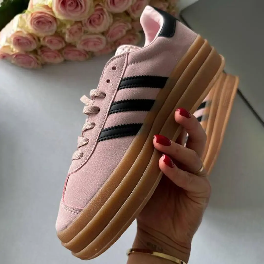 Модель Gazelle Bold Platform відрізняється універсальністю. Кросівки чудово виглядають з легінсами, спортивними штанами, джоггерами та навіть класичними брюками прямого крою. Верхній одяг теж легко підібрати – бомбери, джинсові куртки, паркі або тренчі стануть ідеальним доповненням до вашого гардеробу.