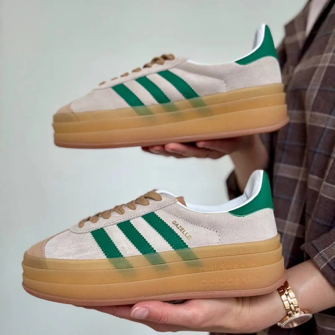 Кросівки жіночі Adidas Gazelle Bold Platform (зелені смужки)