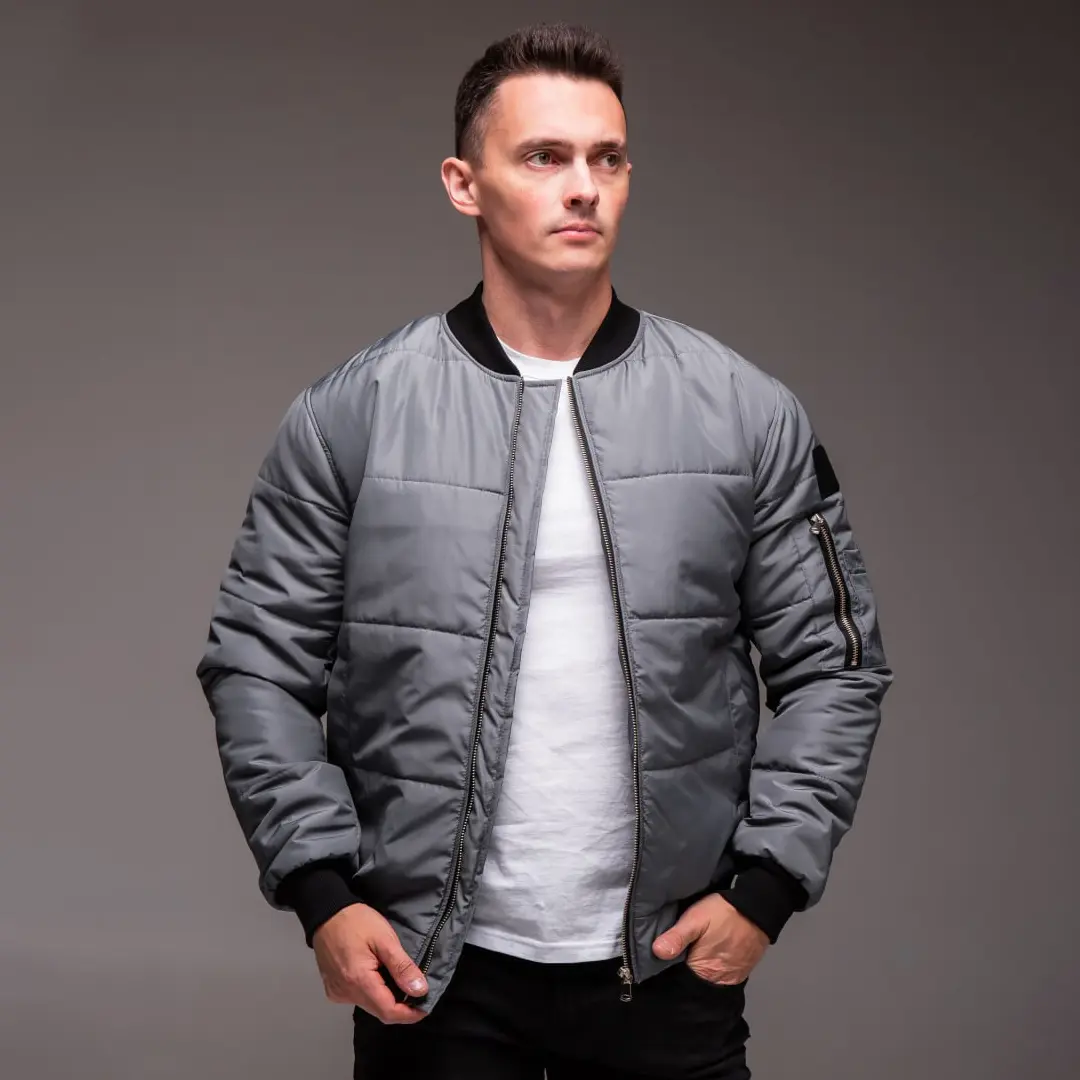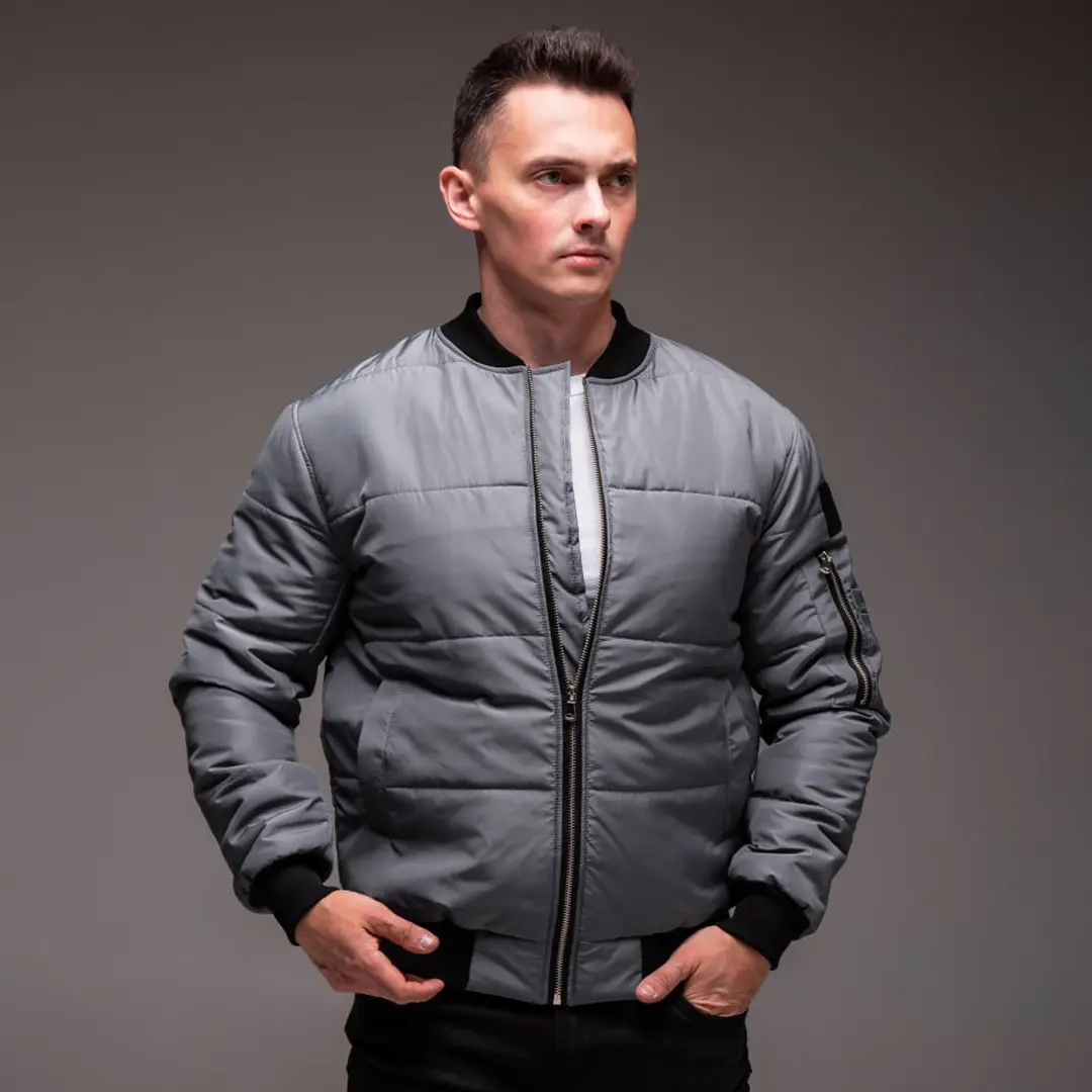 Куртка бомбер утеплена з кишенею на рукаві (сіра) – це саме той виріб, якого не вистачає у вашому гардеробі в перехідну пору року. Вона поєднує практичність і сучасний стиль, підходить як для міських прогулянок, так і для активного відпочинку. Сіра кольорова гама робить її універсальною і легко поєднуваною з різними образами.