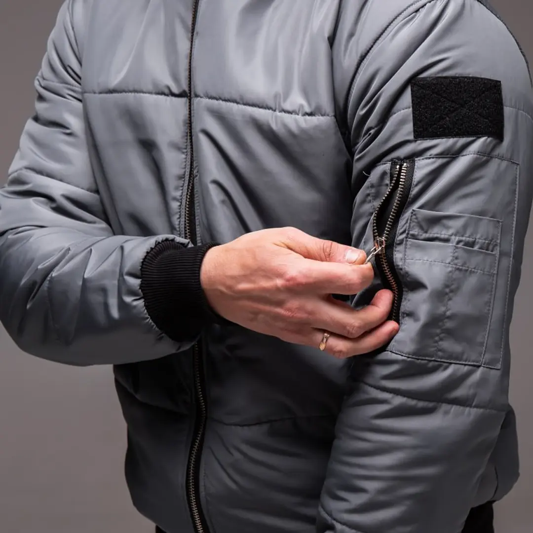 Куртка бомбер утеплена з кишенею на рукаві (сіра)