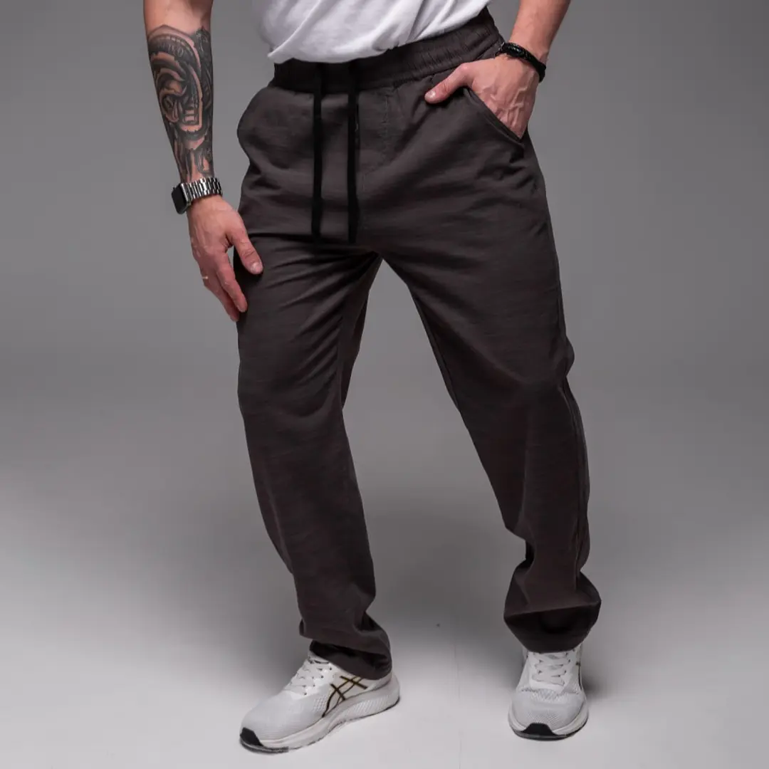 Чоловічі штани з льону на резинці БАТАЛ (темно-сірі) – це вибір тих, хто цінує комфорт без жодних компромісів. Льон дихає, не накопичує спеку і залишає шкіру сухою навіть у спекотні дні. Темно-сірий колір виглядає стримано і доречно в будь-якій ситуації.