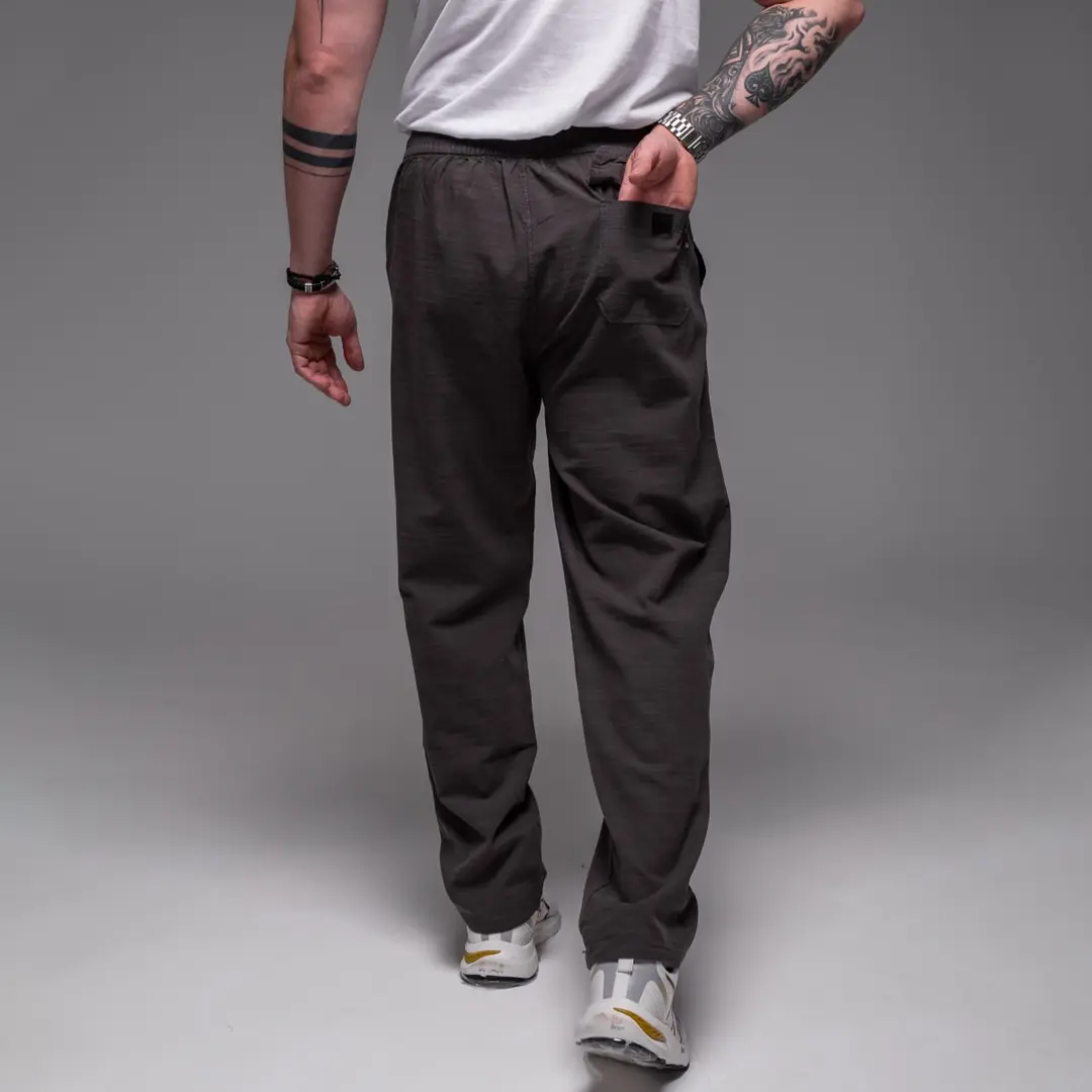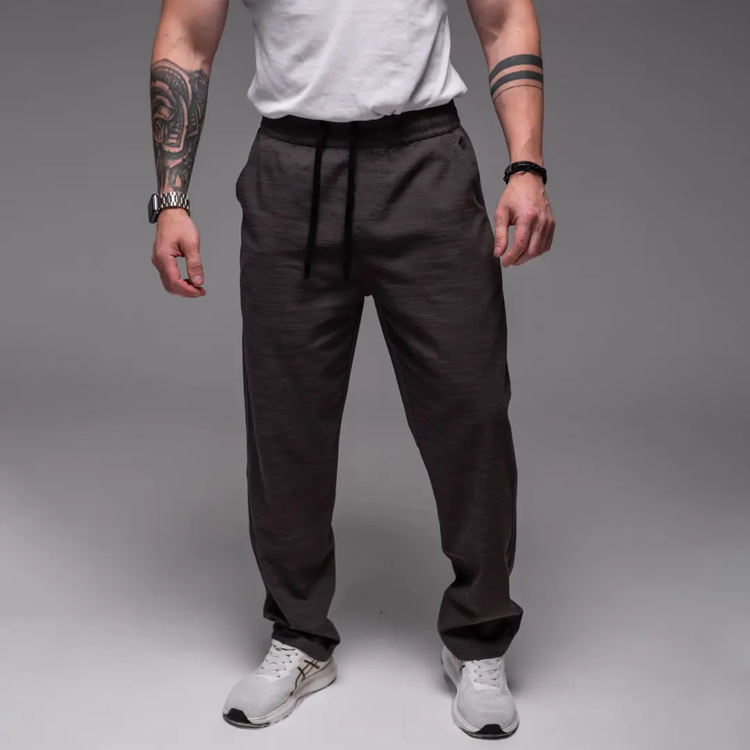 Чоловічі штани з льону на резинці БАТАЛ (темно-сірі)