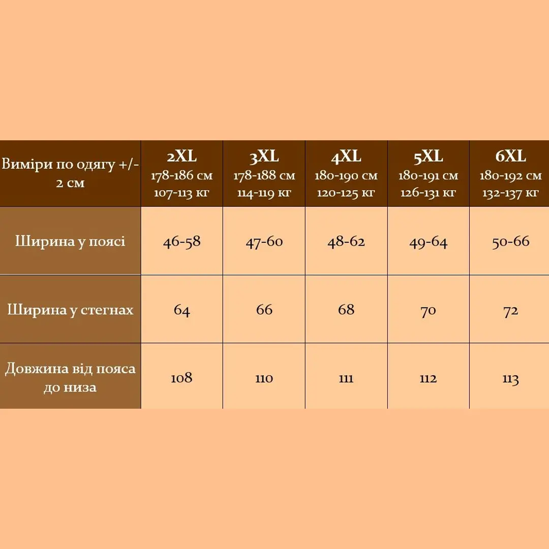 Розміри від 2XL до 6XL — зручно для чоловіків статури БАТАЛ.