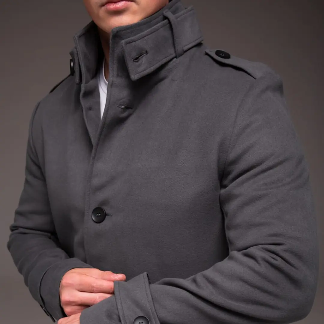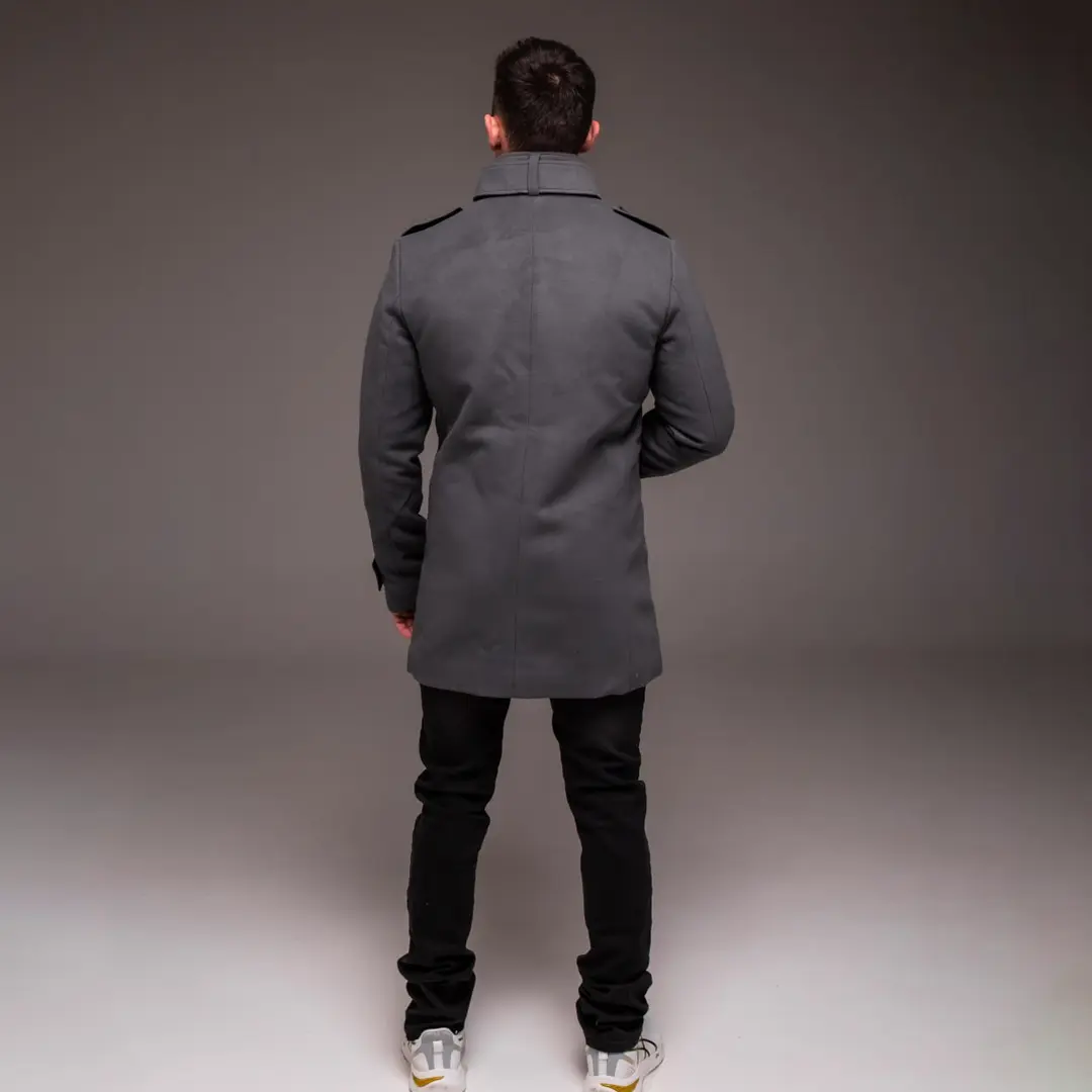 Стильне чоловіче утеплене пальто без капюшона (сіре)