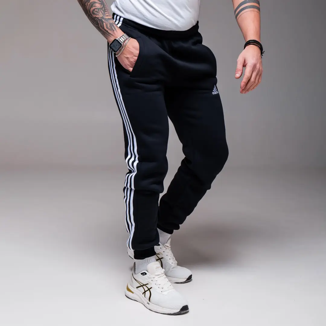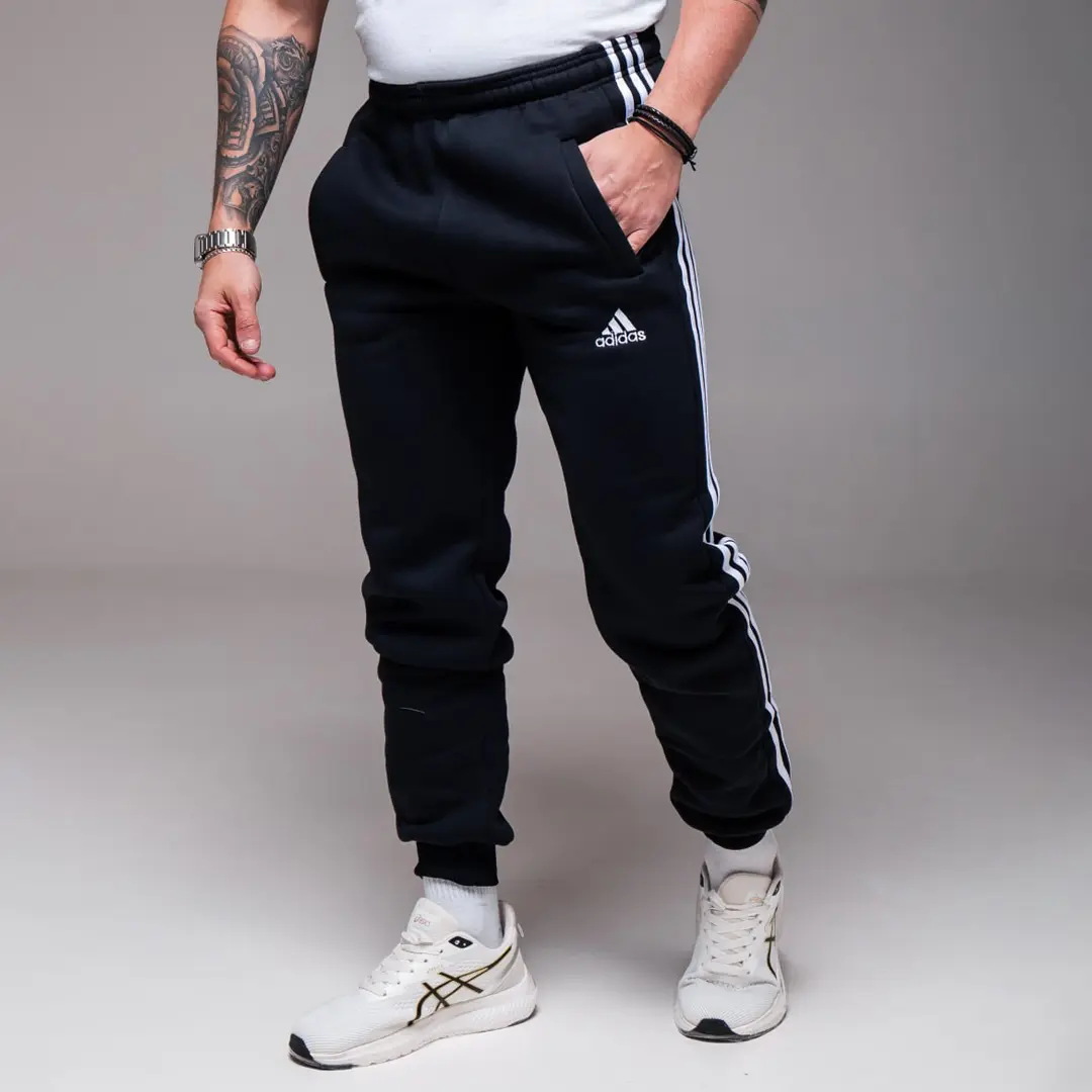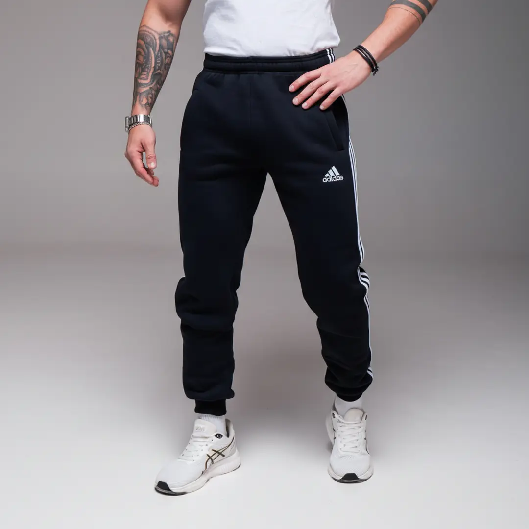 Утеплені спортивні штани Adidas на манжеті (сині) доступні в п’яти розмірах від S до XXL, що дозволяє підібрати оптимальну посадку. Модель чудово поєднується з базовими світшотами, толстовками на блискавці або спортивними кофтами. Для завершення образу підійдуть білі кросівки або чорні кеди. У комплекті з рюкзаком створите функціональний спортивний look для щоденних тренувань.