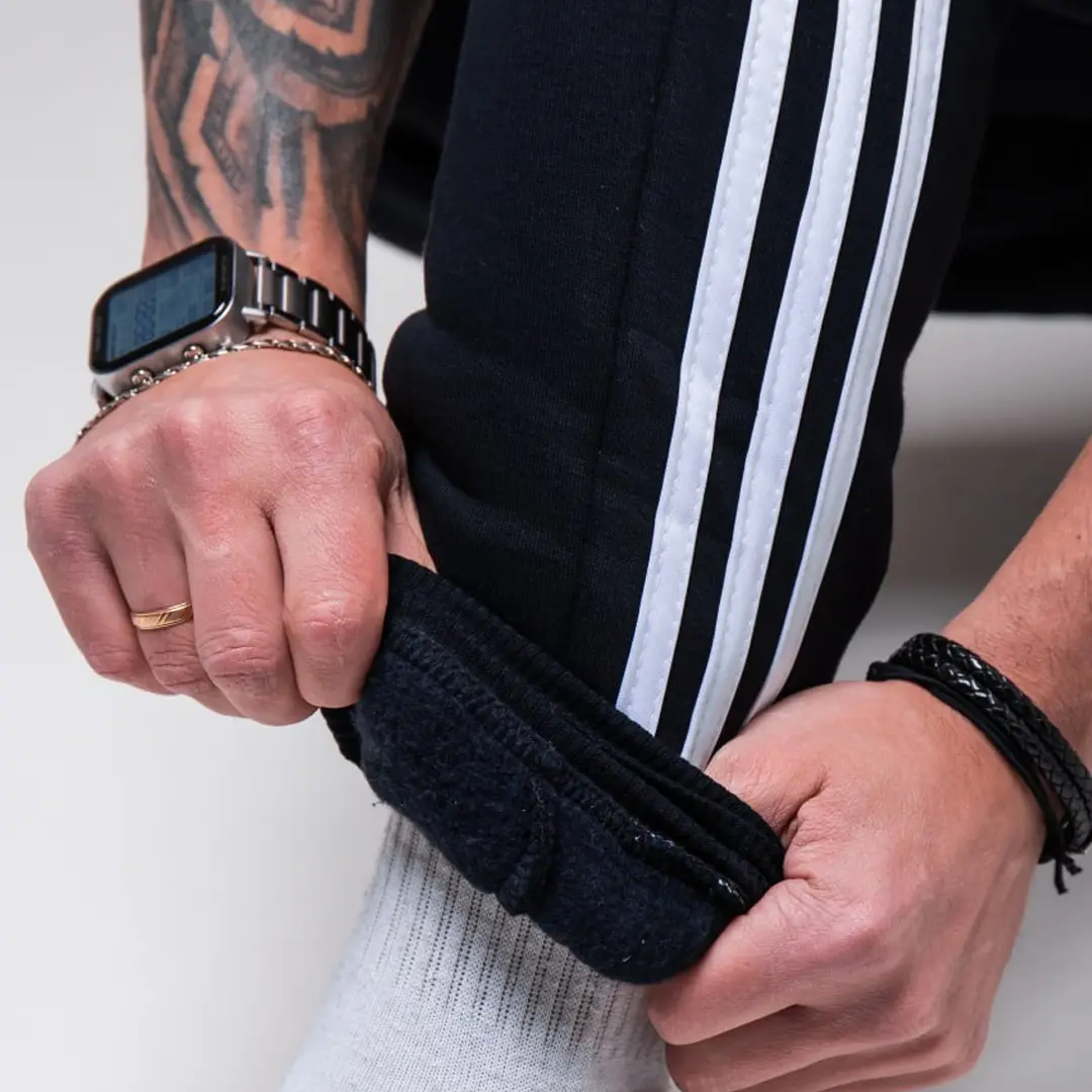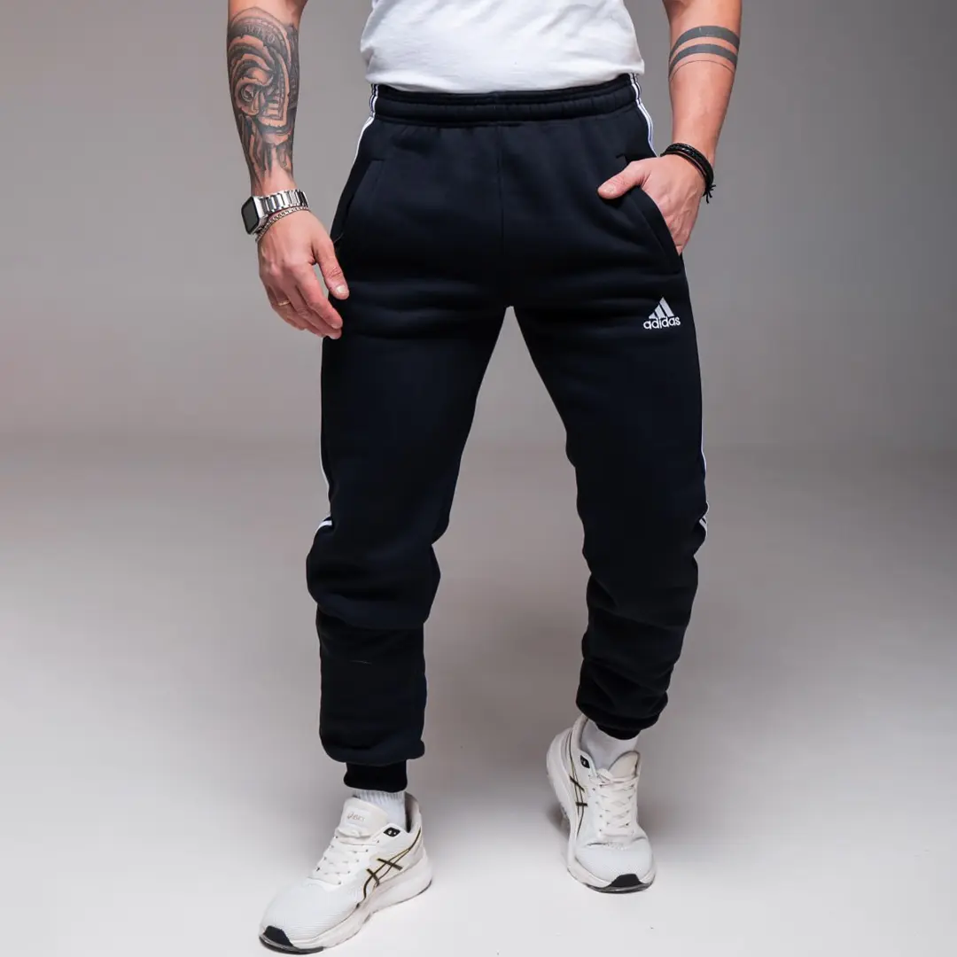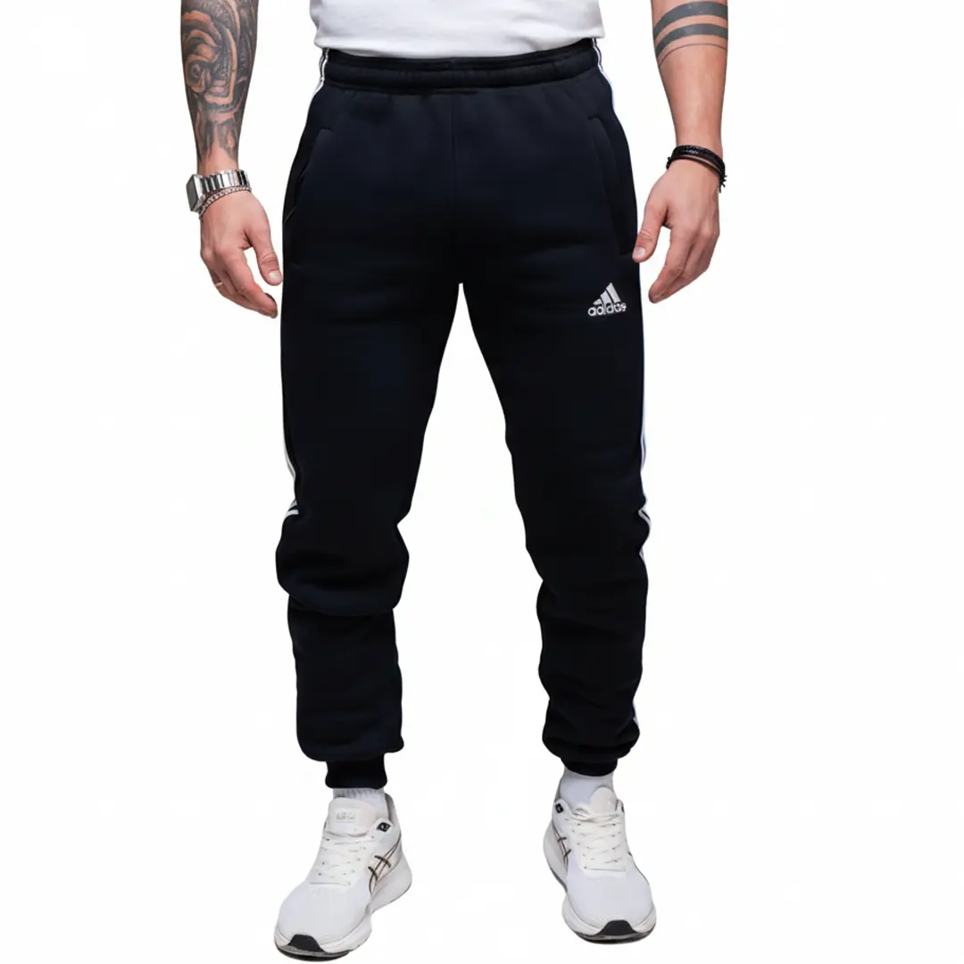 Утеплені спортивні штани Adidas на манжеті (сині) доступні в п’яти розмірах від S до XXL, що дозволяє підібрати оптимальну посадку. Модель чудово поєднується з базовими світшотами, толстовками на блискавці або спортивними кофтами. Для завершення образу підійдуть білі кросівки або чорні кеди. У комплекті з рюкзаком створите функціональний спортивний look для щоденних тренувань.