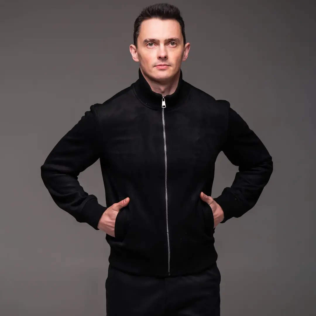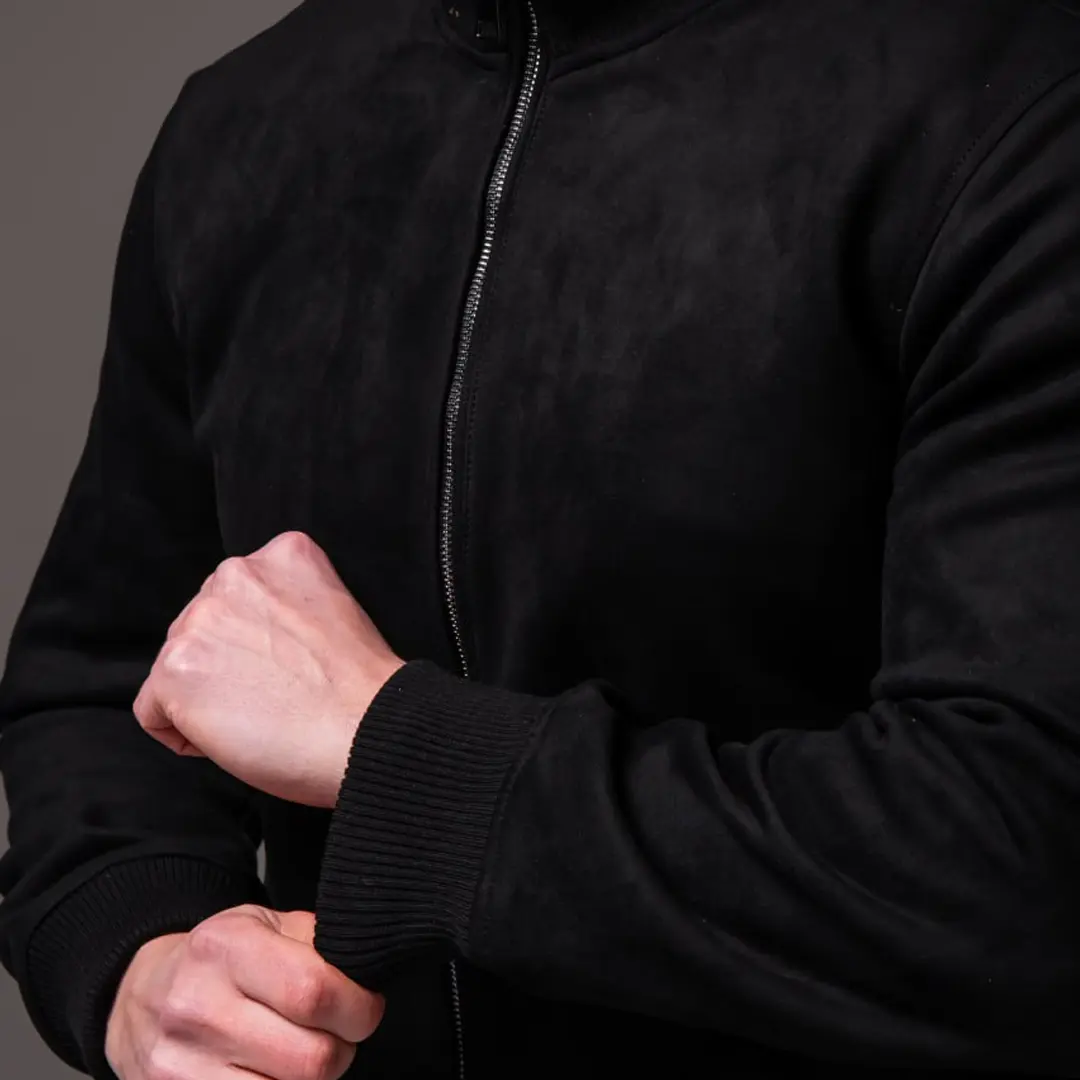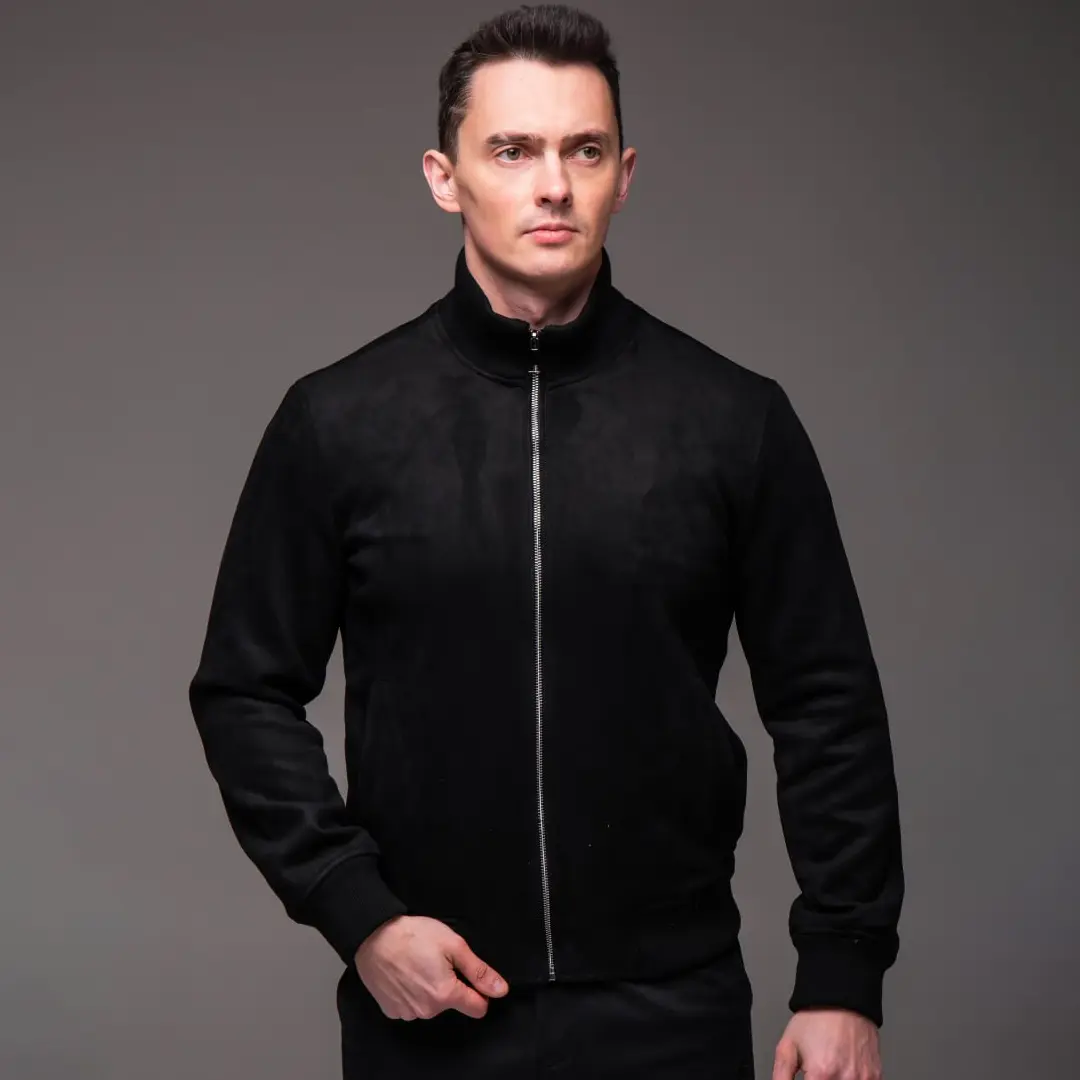 Чорна замшева чоловіча куртка з коміром стійкою легко вписується в різні образи. Поєднуйте її з темними джинсами slim-fit і білою футболкою для класичного міського образу. До неї пасують кросівки або черевики на шнурівці. З шарфом-снудом або шапкою біні куртка виглядає ще більш завершено в холодніші дні.