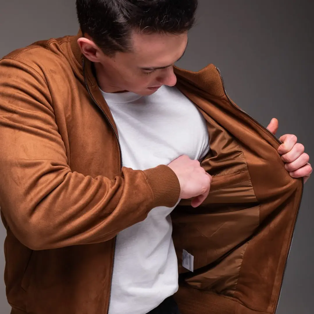 Замшева куртка “Woody” комір стійка (коричнева) – це демісезонний вибір для тих, хто цінує стиль і практичність. М’яка замша приємна на дотик, добре тримає форму і виглядає бездоганно як у перший день носіння, так і після багатьох сезонів.