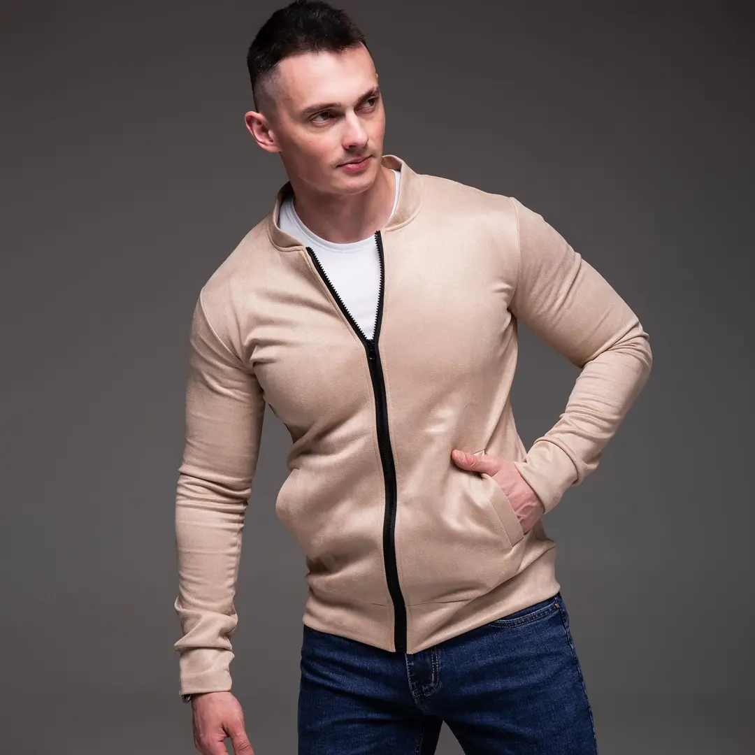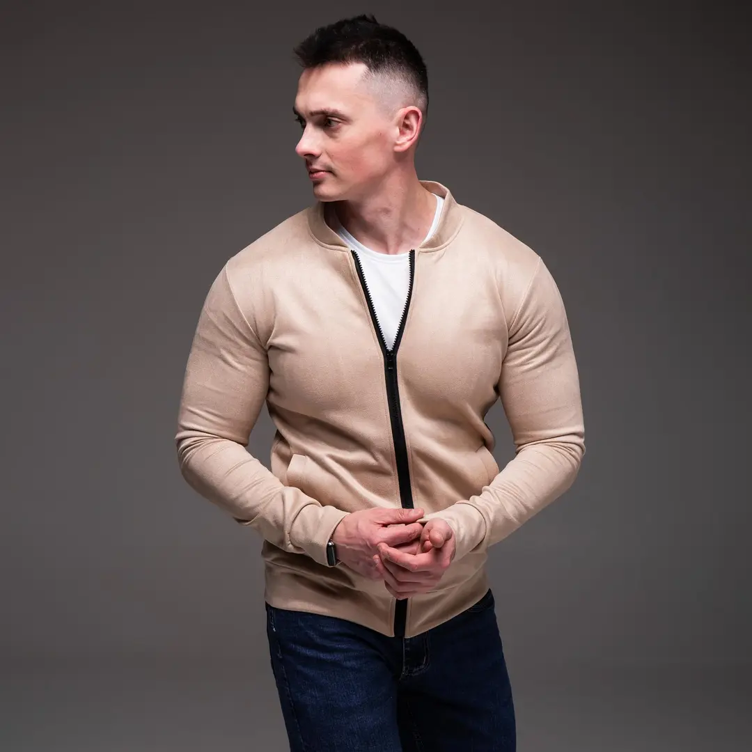 Замшевий демісезонний бомбер casual (бежевий)
