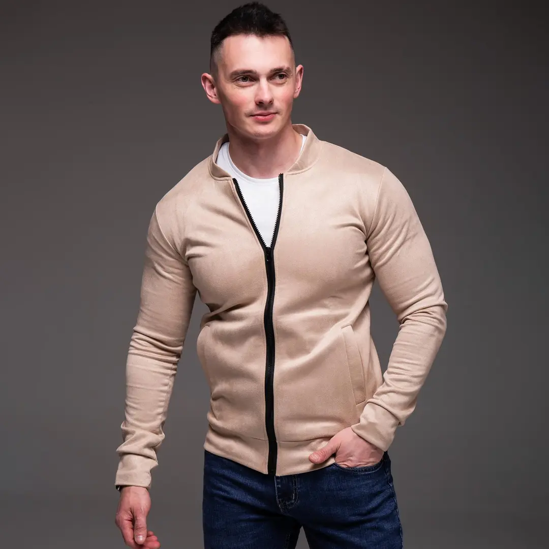 Виконаний зі 100% поліестеру, він має приємну на дотик замшеву фактуру, яка додає образу вишуканості. Застібка-блискавка та дві бічні кишені забезпечують практичність, а лаконічний крій робить його універсальним вибором для будь-якого стилю – від класичного до спортивного.
