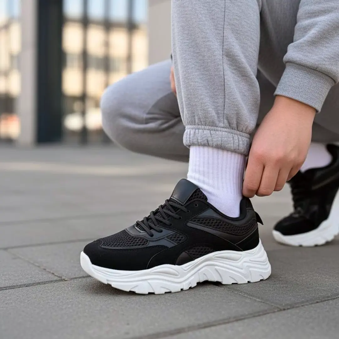 Чорний колір робить ці демісезонні кросівки надзвичайно практичними. Вони легко комбінуються з різними елементами гардероба та не потребують частого очищення. Спортивний дизайн дозволяє створювати як casual-образи для прогулянок містом, так і активні комплекти для тренувань на свіжому повітрі.