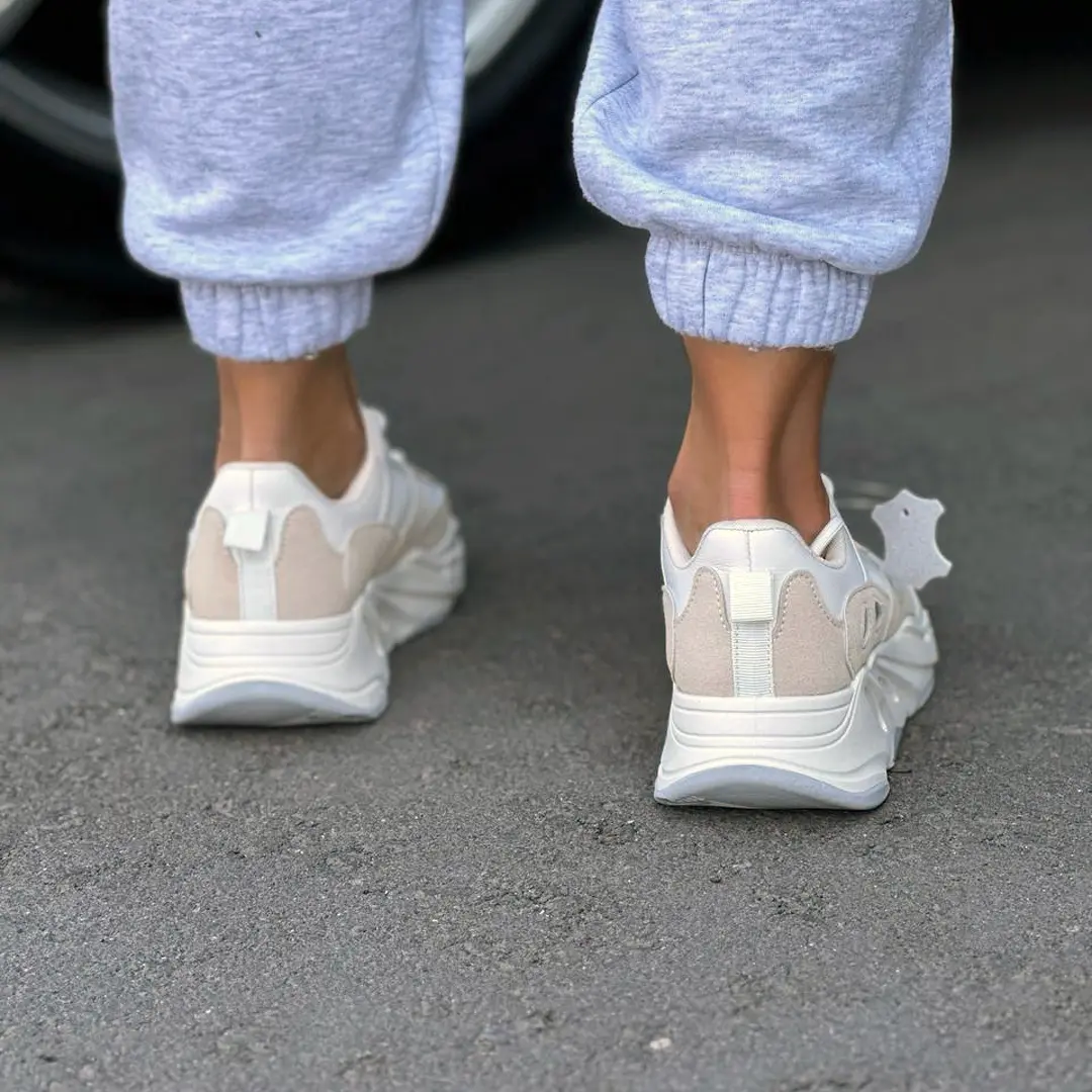 Ці жіночі кросівки легко поєднуються з джинсами-скінні або бойфрендами, спортивними штанами, леггінсами та casual-сукнями. Доповніть образ невеликою шкіряною сумкою через плече або рюкзаком у нейтральних тонах. Для прохолодної погоди підійдуть куртки-бомбери, джинсові жакети або кардигани оверсайз.