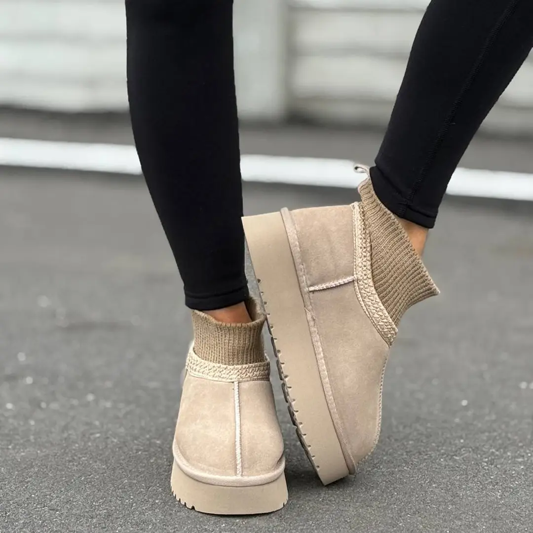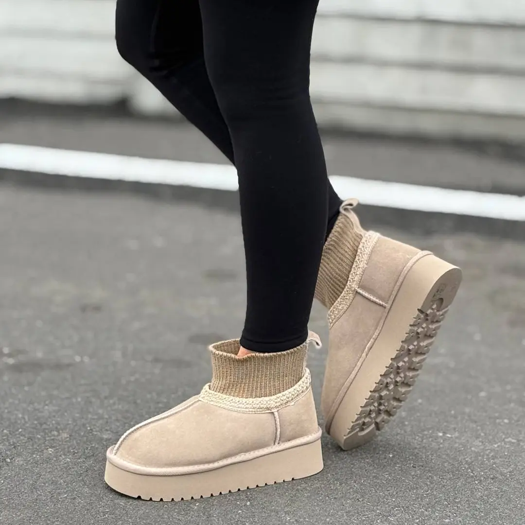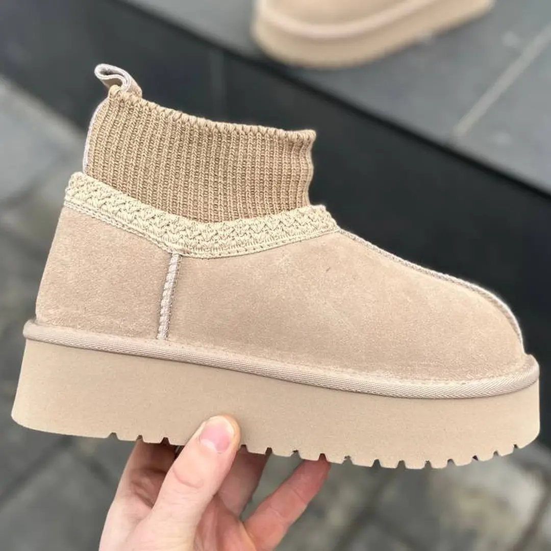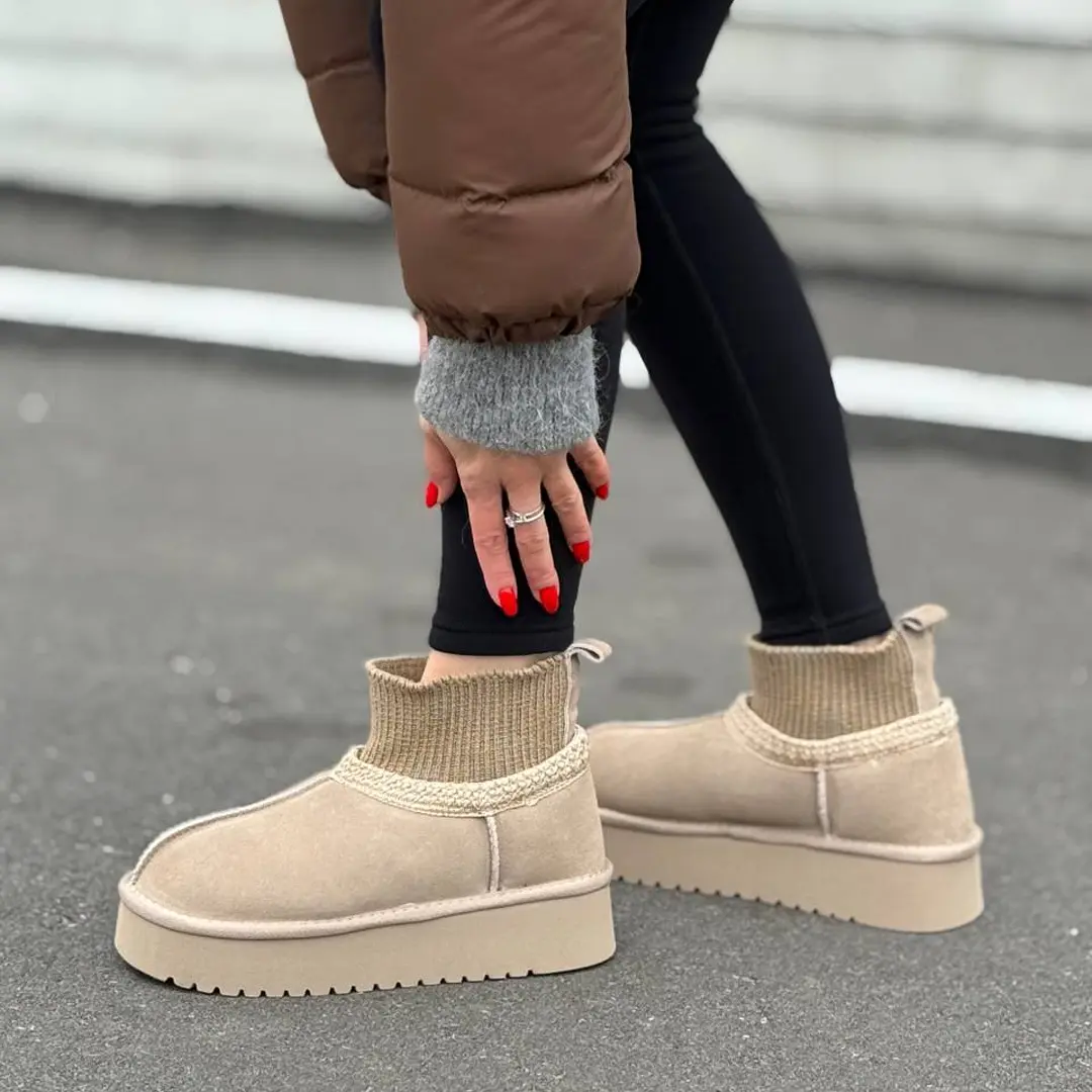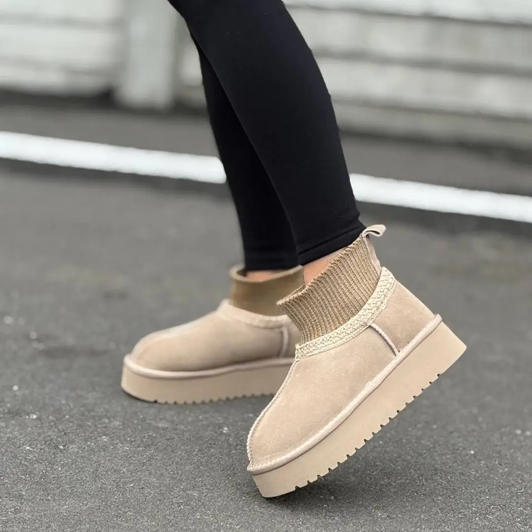 Уггі мають оптимальну висоту, яка надійно захищає ногу від холоду та вологи. Замшевий верх легко доглядати спеціальними засобами. Підошва забезпечує відмінну амортизацію, що особливо важливо для тривалих прогулянок містом.