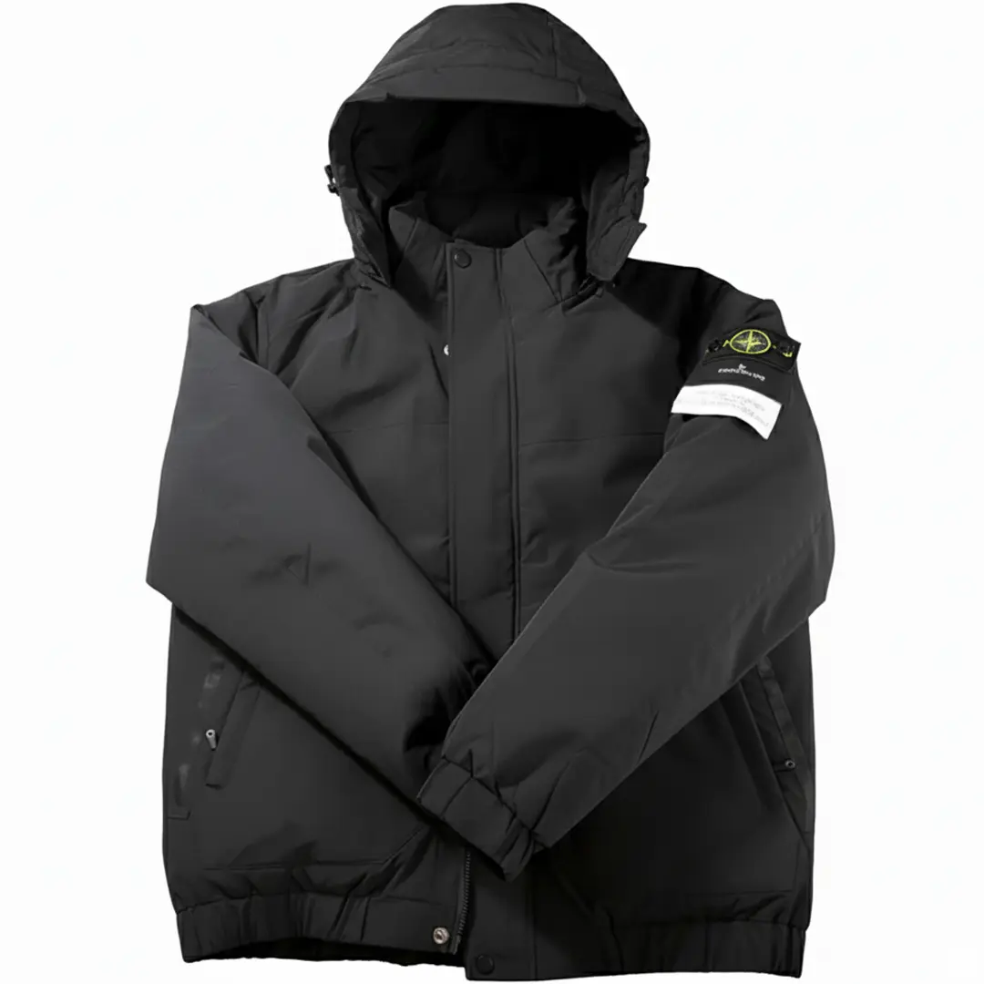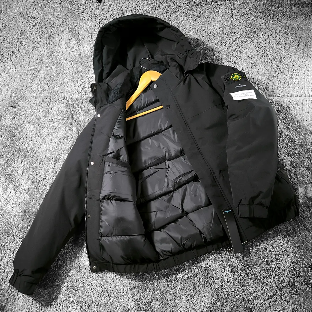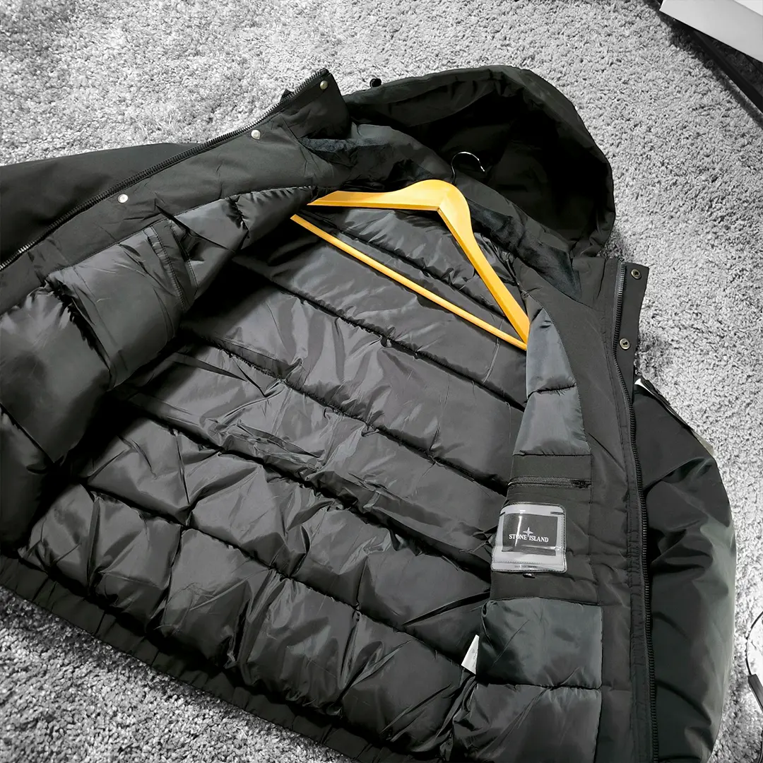 Зимова чоловіча куртка Stone Island (чорна) має продуманий крій. Капюшон з’ємний, його легко зняти або затягнути, коли піднімається вітер. Зручна довжина закриває поперек. Фурнітура з логотипом Stone Island підкреслює стиль та статус. Така модель підходить для щоденних виходів на роботу та вечірніх прогулянок.
