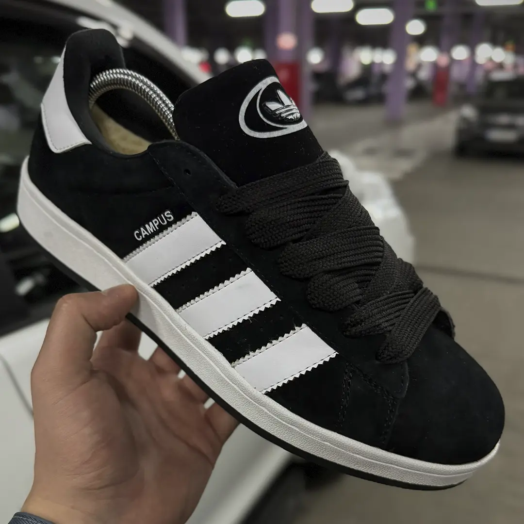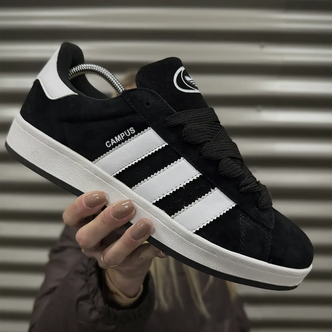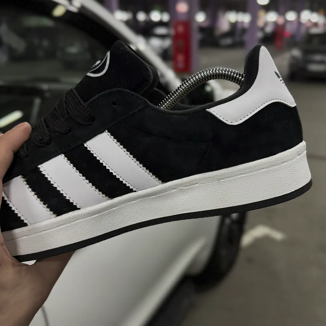 Зимові кросівки Adidas Campus (black & white) мають збалансовану будову. Верхня частина з м’якої замші не тріскається й не втрачає форму. Усередині хутро рівномірно розподілене, що дає комфорт під час тривалого носіння. П’ятка посилена для стабільності. Шнурівка класична, регулюється легко, забезпечує щільну посадку стопи.