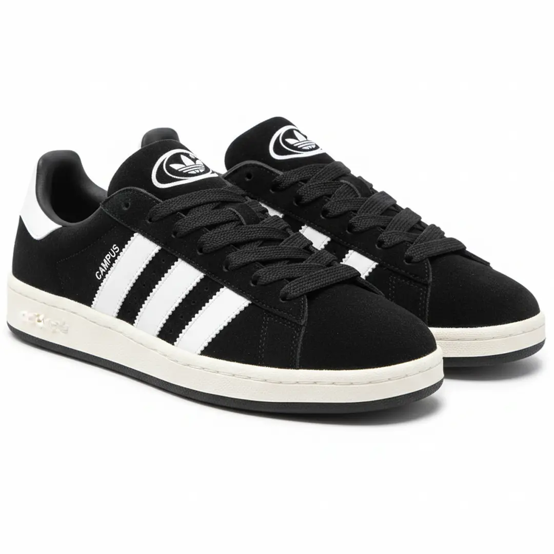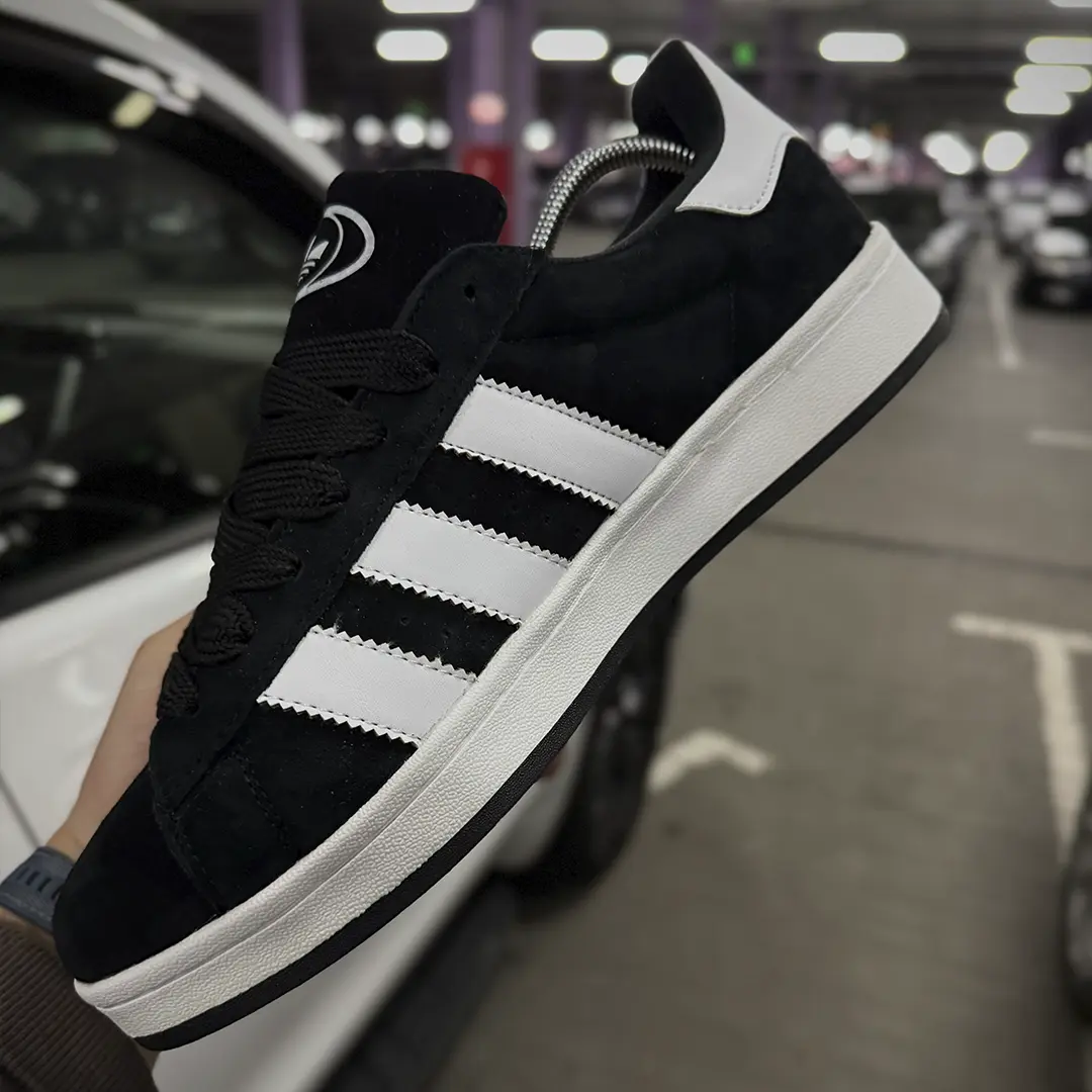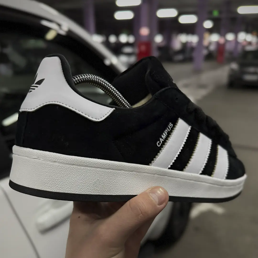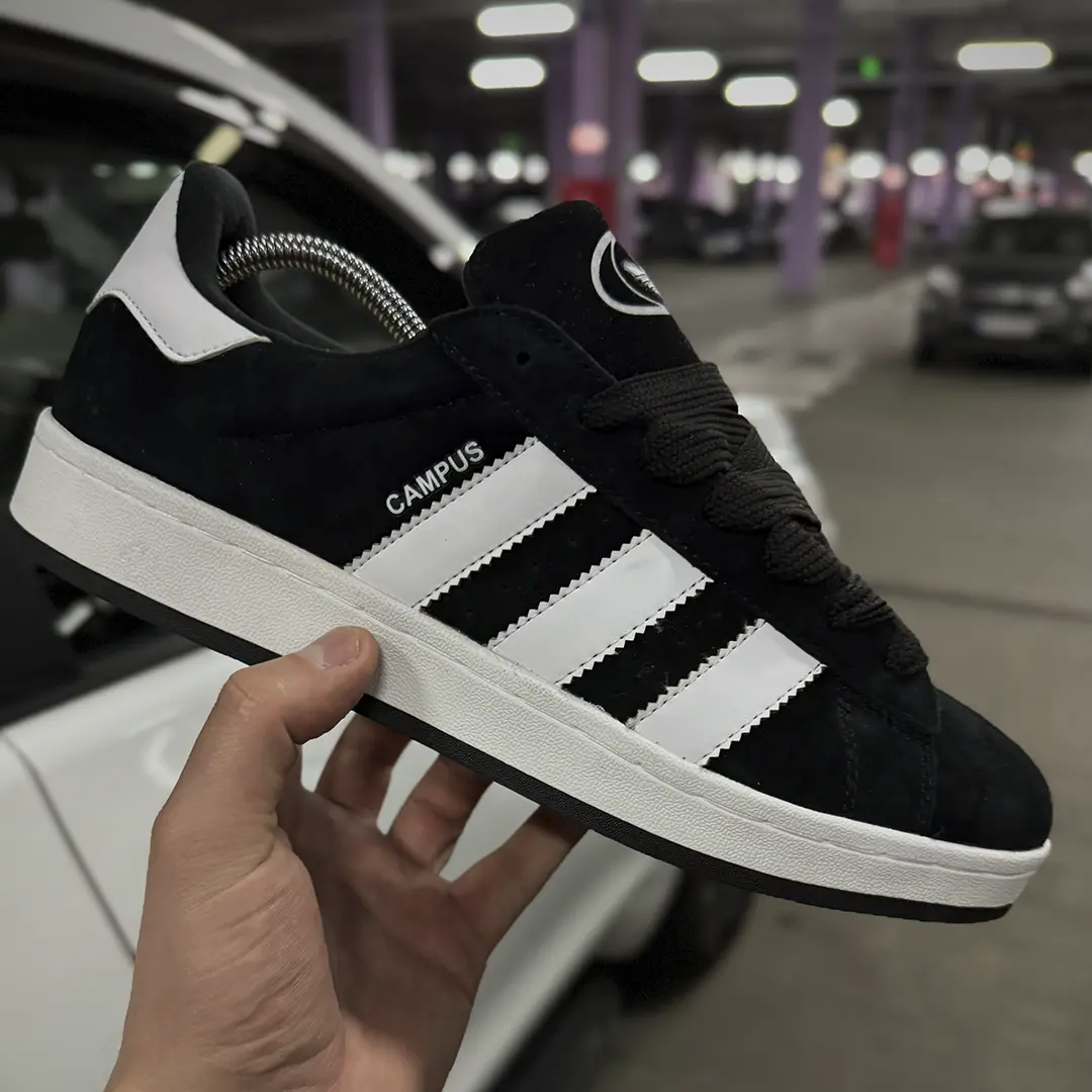 Зимові кросівки Adidas Campus (black & white) мають збалансовану будову. Верхня частина з м’якої замші не тріскається й не втрачає форму. Усередині хутро рівномірно розподілене, що дає комфорт під час тривалого носіння. П’ятка посилена для стабільності. Шнурівка класична, регулюється легко, забезпечує щільну посадку стопи.